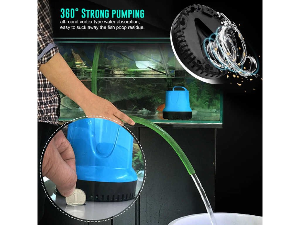 Už vás nebaví trápit se s odčerpáváním vody z mělkých akvárií nebo těžko přístupných míst? Představujeme praktické výtlačné čerpadlo se spodním sáním, vašeho nového nejlepšího kamaráda pro všechny vodní radosti. Tohle není jen tak ledajaké čerpadlo – je to klíč k snadnější údržbě a větší radosti z vašeho vodního království!