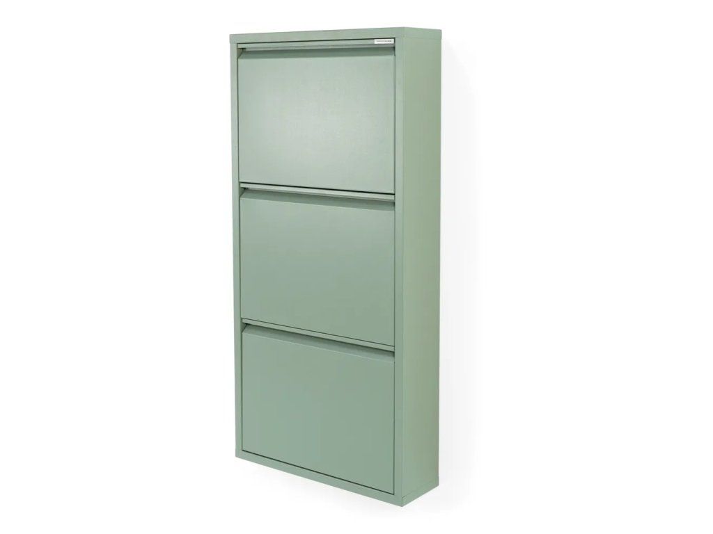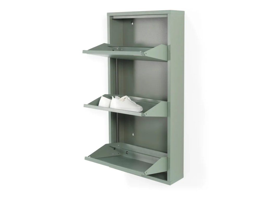 Kovový botník Billy od značky Spinder Design je ideálním řešením pro úložení obuvi v moderních domácnostech. Díky výklopnému mechanismu šetří místo a zároveň poskytuje rychlý přístup k botám. Atraktivní zeleno-šedá barevná kombinace dodá interiéru moderní vzhled.