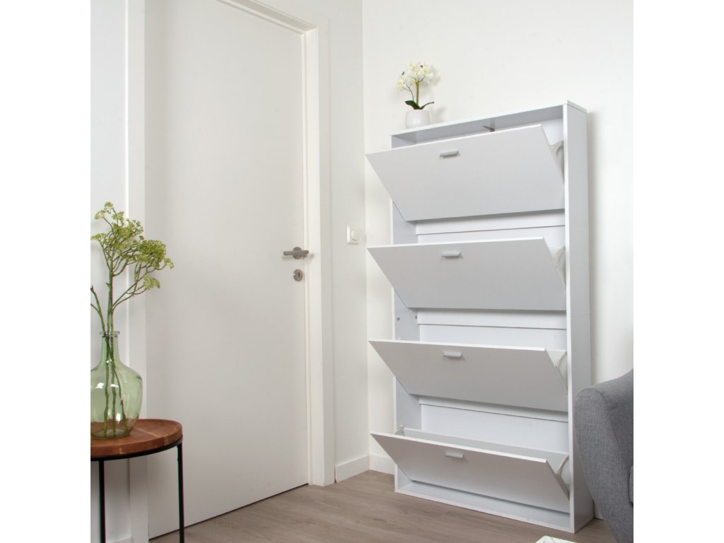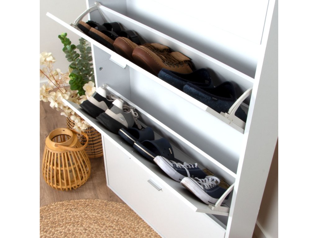 Dvířka se otevírají pomocí šedých úchytek a každé dvířka pojmou přibližně tři páry bot. To znamená, že do skříně můžete uložit celkem přibližně 12 párů bot . Organizér na boty Milton & Oldbrook je vyroben z bílé MDF . Zkombinujte ho s rostlinou, taburetem nebo zrcadlem a okamžitě dodáte vaší chodbě nebo šatně stylový nádech. Úložná skříň Maribor je 80 cm široká, 18 cm hluboká a 152 cm vysoká.