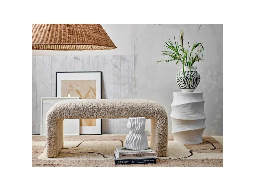 Barva Krémová Šířka 100 cm Výška 45 cm Hloubka 45 cm Váha 7.9 kg Nosnost 120 kg Výška nohou 35 cm Výška sedáku 45 cm Materiál čalounění Bouclé Specifikace materiálu 100% polyester Materiál Polstrované Materiál konstrukce Masiv borovice, překližka Výplň Molitan (PUR) Tvrdost sedáku Středně tvrdý Péče Pravidleně vysávat s vhodným nástavcem na čalouněný nábytek, čistit suchým hadřikem, nepouživat agresivní a abrazivní čističe Typ Bez opěrky, čalouněná