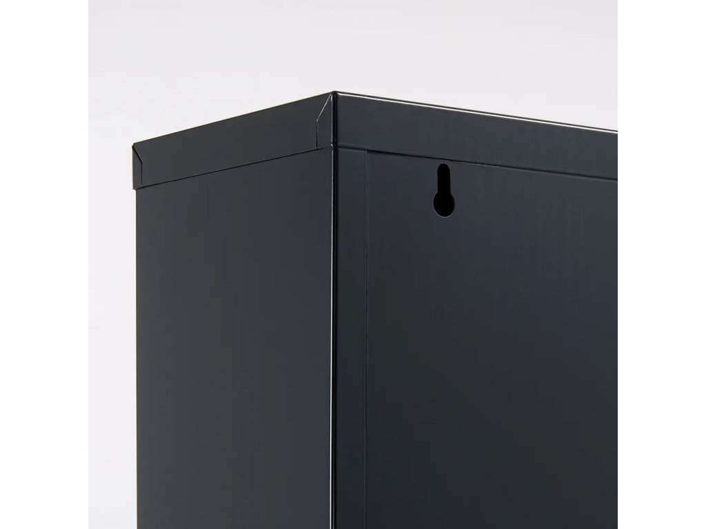 Barva Antracitová Šířka 50 cm Výška 103 cm Hloubka 15 cm Váha 12.6 kg Nosnost 9 kg Materiál Kov Materiál konstrukce Ocel Dekor Pololesk Povrchová úprava Práškový lak Materiál poliček Ocel Povrchová úprava poliček Práškový lak Materiál zásuvky Ocel Povrchová úprava zásuvky Práškový lak Péče Čistit vlhkým hadříkem nebo houbičkou, nepouživat agresivní a abrazivní čističe Typ botníku Výklopný, uzavřený