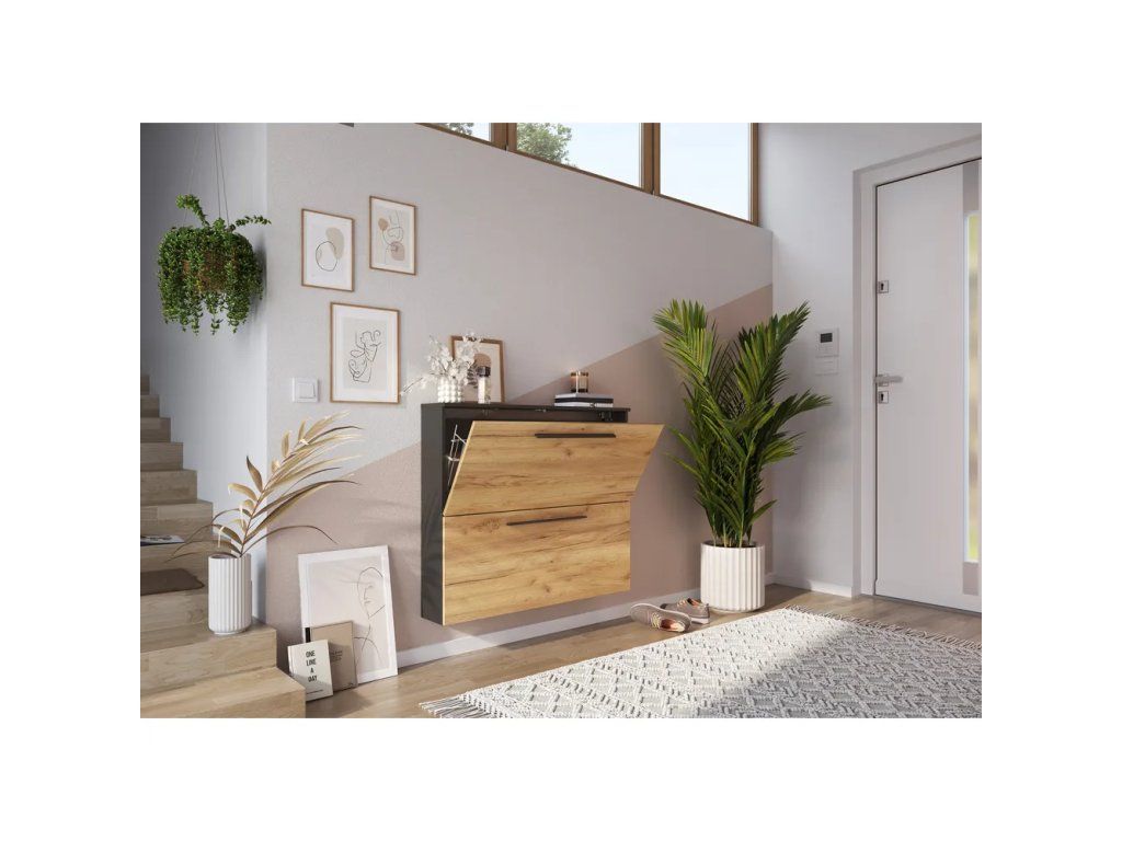 Barva Antracitová, přírodní Šířka 100 cm Výška 85 cm Hloubka 19 cm Váha 22.078 kg Nosnost 40 kg Výška nohou 2 cm Materiál Dřevotříska Dekor Dub Barva dřeva Světlé dřevo Povrchová úprava Melamin Materiál nohou Plast Barva nohou Černá Materiál dvířek Dřevotříska Povrchová úprava dvířek Melamin Péče Čistit vlhkým hadříkem nebo houbičkou, nepouživat agresivní a abrazivní čističe Typ botníku Výklopný, uzavřenýDoplňkové parametry