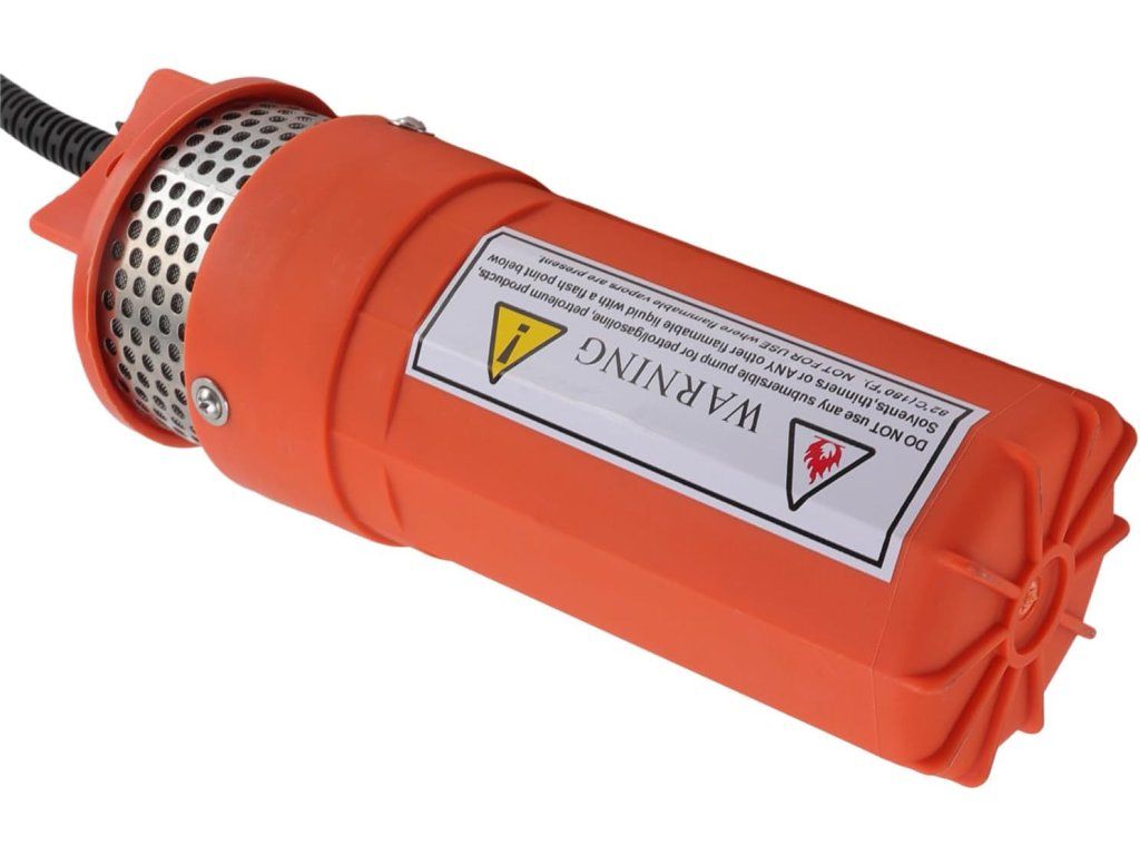 Obsah balení: 1× ponorné čerpadlo do studny, 1× návod k použití. Technické údaje: napětí 24 V, proud 4 A, výkon cca 100 W, průtok ~6,5 l/min (1,7 GPM), výtlačná výška ~70 m, výstupní otvor ~12,7 mm (0,5"), rozměry přibližně 26,5 × 10 × 8,8 cm, hmotnost cca 2646 g. Doporučení: po 3 hodinách souvislého provozu čerpadlo zastavit na ~30 minut (manuálně nebo pomocí regulátoru) pro prodloužení životnosti; zajistit instalaci pod minimální očekávanou hladinou vody.