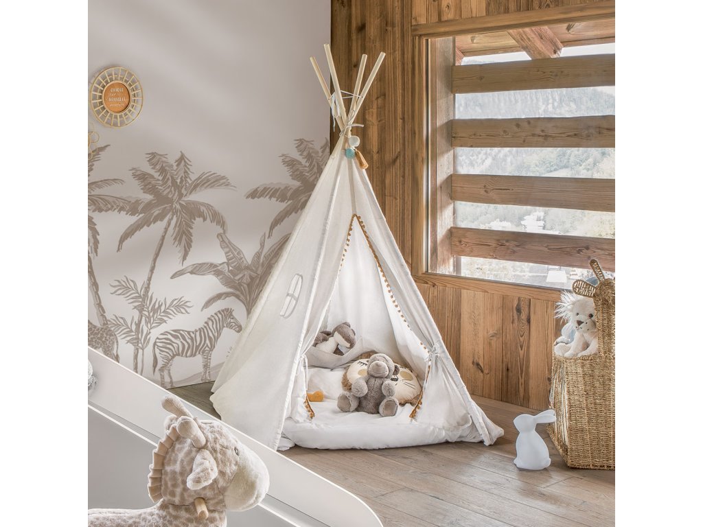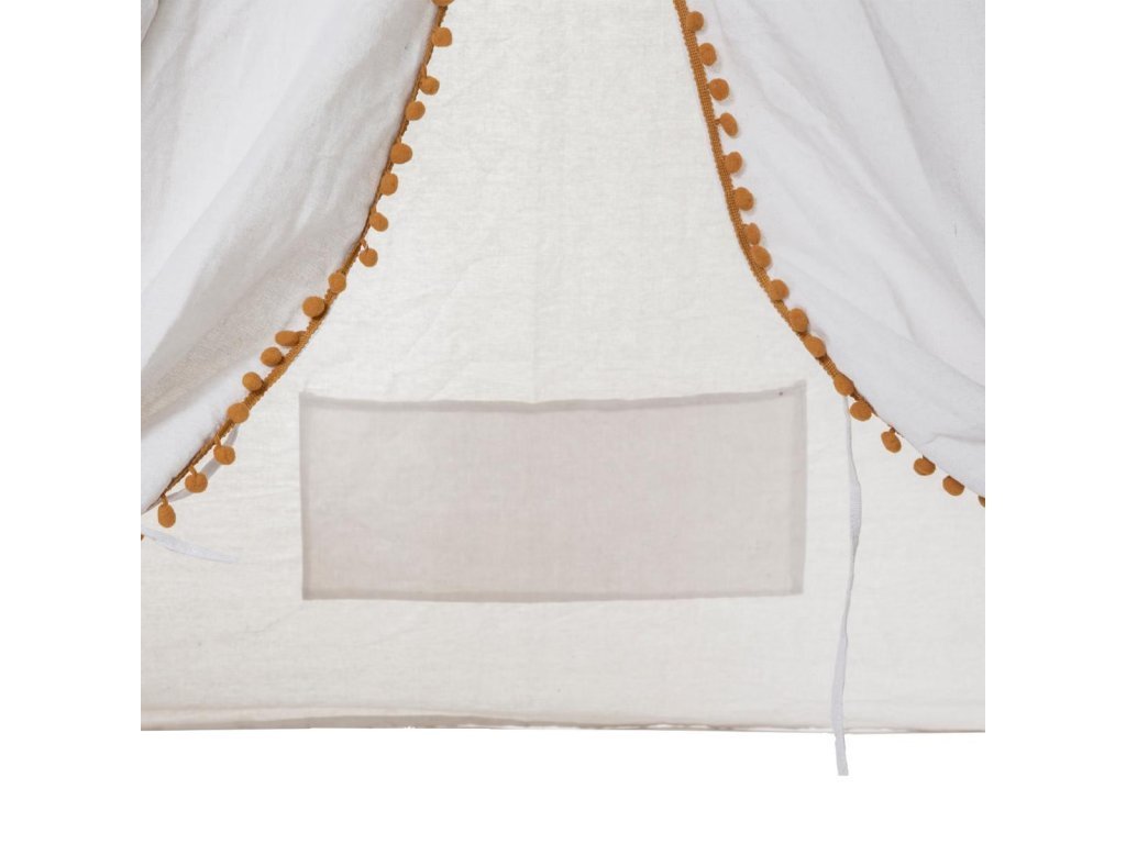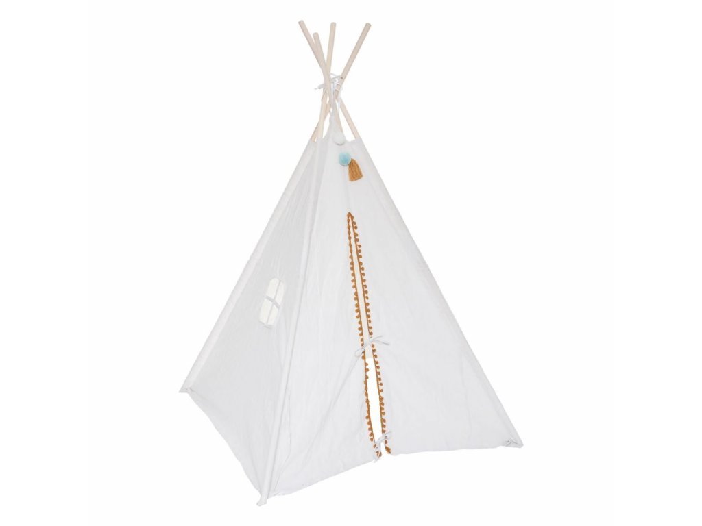 Teepee je ideální pro malé děti, které si v něm mohou vytvořit svůj vlastní svět plný fantazie. Díky lehkému a vzdušnému materiálu je vhodné do dětského pokoje i na zahradu. Ozdobné detaily dodávají stanu hravost a podněcují kreativitu při hraní.