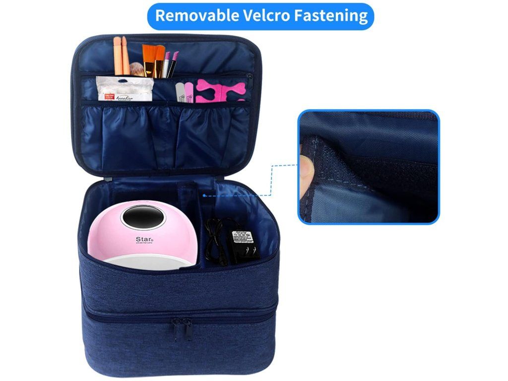 - Dvojitá vrstva: Mezivrstva s dostatkem multifunkčních kapes pro přehledné uskladnění lahviček, štětců a doplňků.