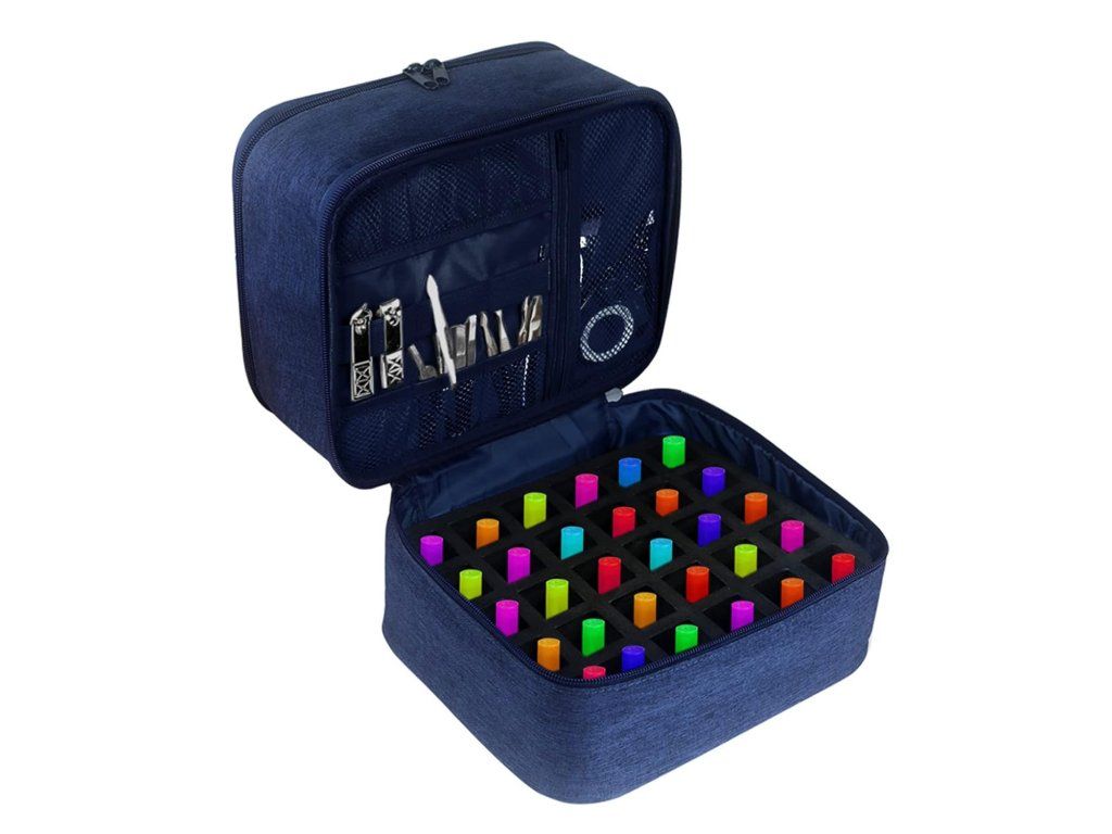 - Velká kapacita: Pojme až 30 lahviček o objemu do 15 ml a další drobné pomůcky jako pilníky nebo vatové tampony.