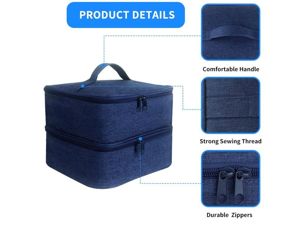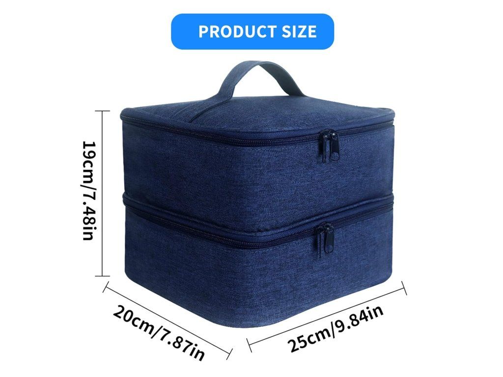 Obsah balení: 1× taška na laky na nehty. Technické údaje: rozměry 25 × 20 × 19 cm, materiál polyester, hmotnost cca 398 g, barva tmavě modrá, kapacita až 30 lahviček (do 15 ml), uzávěr na zip. Značka: Dirfuny. Vyrobeno v Číně.
