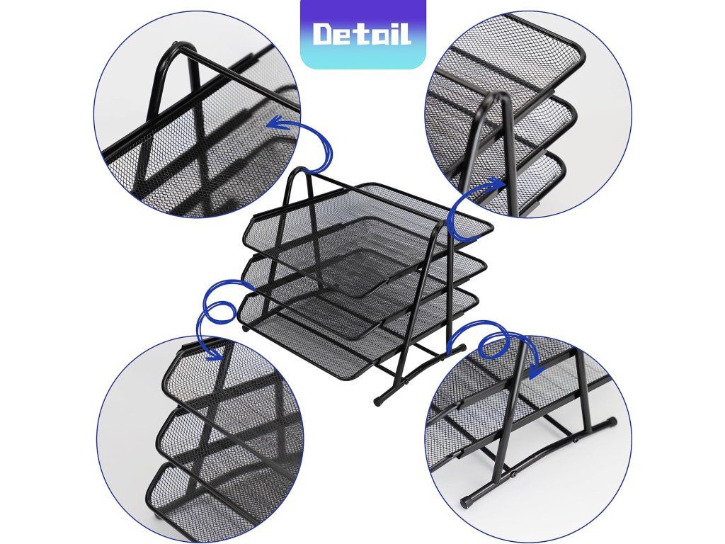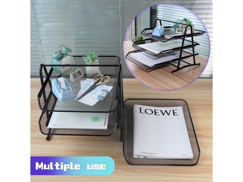 - Praktická funkce: Tři posuvné přihrádky pro rychlé třídění dopisů, dokumentů a složek.
