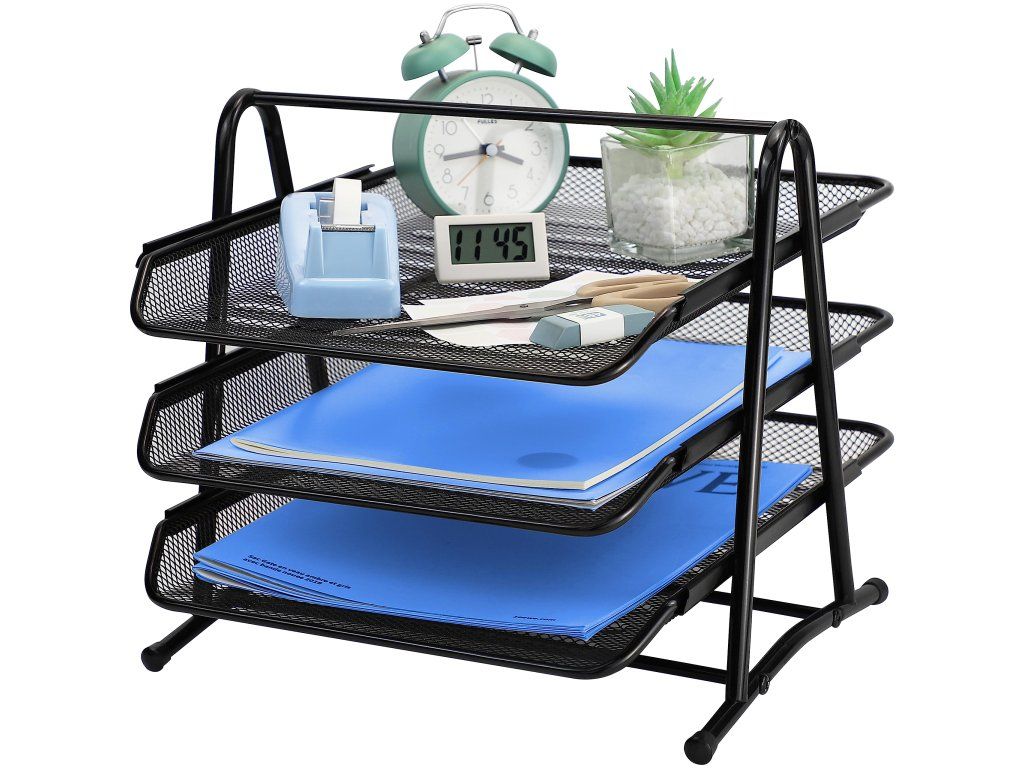 Organizace dokumentů v kompaktním a stabilním provedení — posuvný 3patrový zásobník na dokumenty A4 přináší pořádek na pracovní stůl, usnadňuje třídění pošty a poskytuje místo pro školní i kancelářské papíry. Kovová konstrukce s práškovým lakem, ergonomickým madlem a posuvnými přihrádkami umožňuje rychlý přístup k dokumentům a šetří prostor.