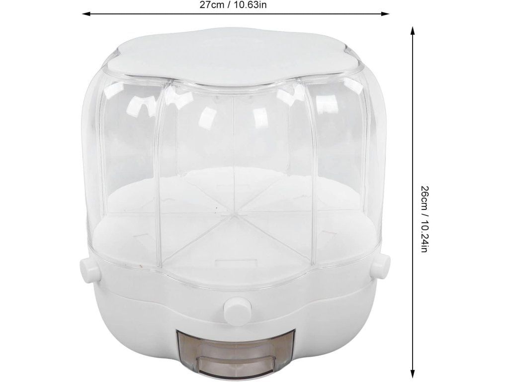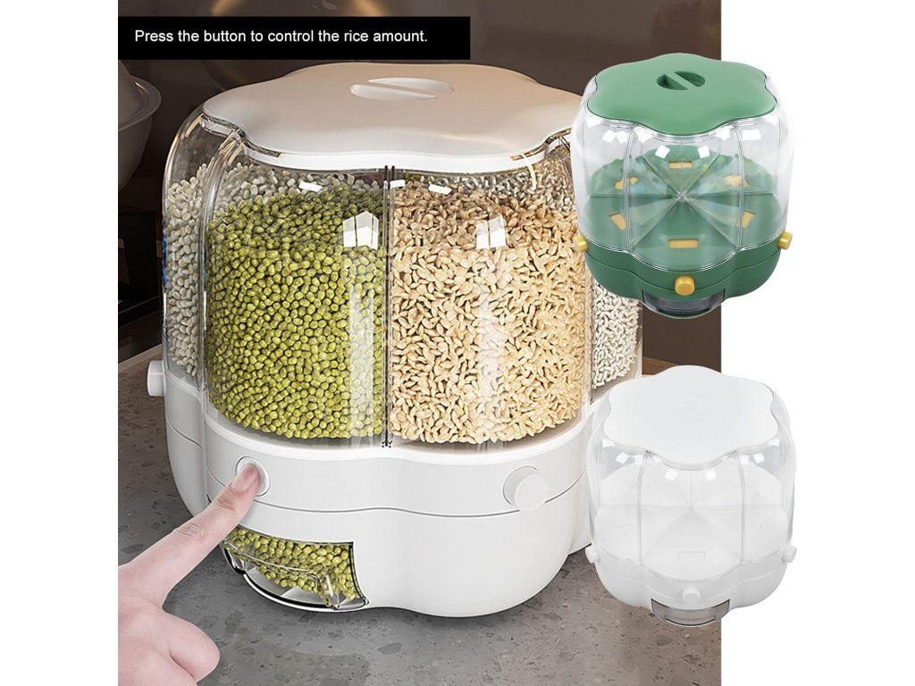 Praktický otočný dávkovač rýže umožní ukládat různé druhy obilovin odděleně, ušetří místo v kuchyni a zajistí čerstvost díky vzduchotěsnému provedení. Díky otočnému mechanismu a jednoduchému tlačítku pro dávkování rychle a přesně nadávkujete požadované množství.
