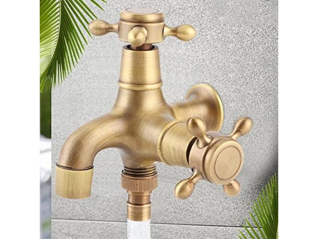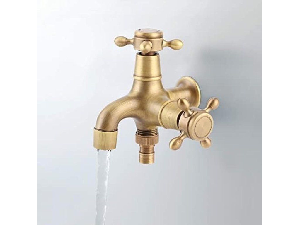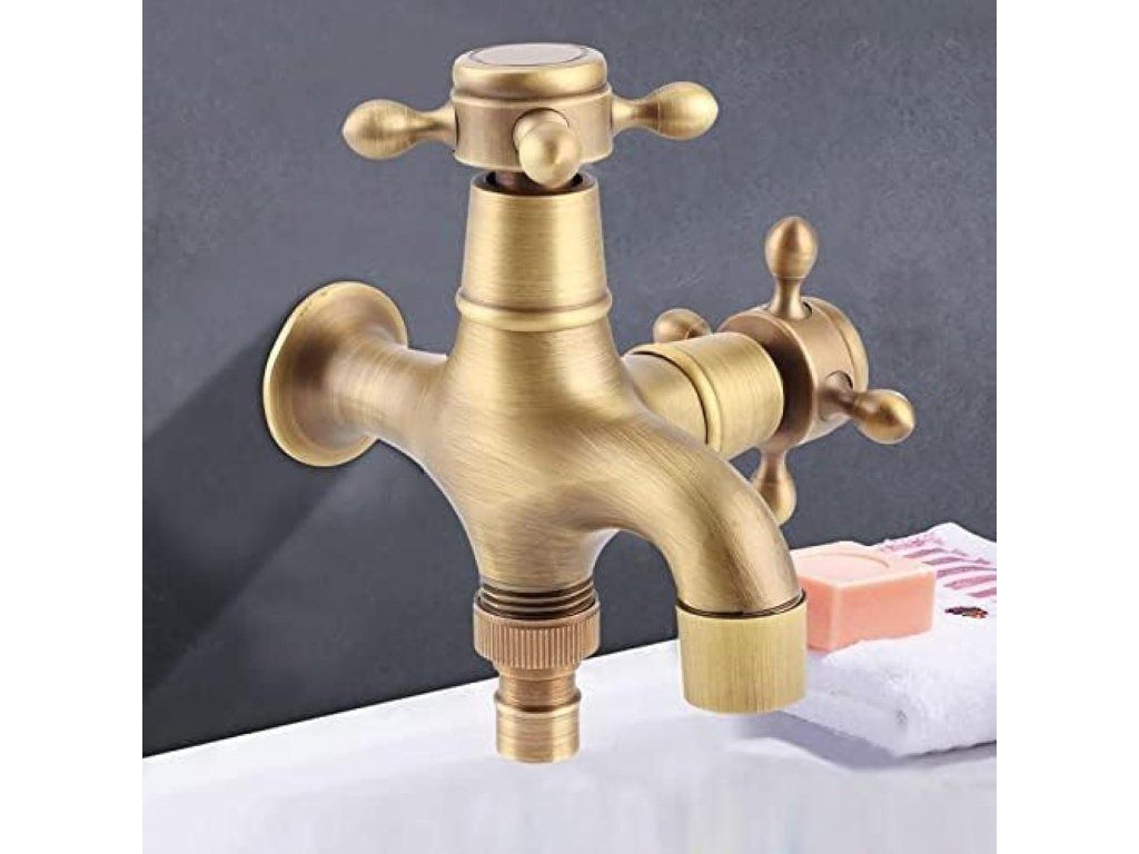Praktická a stylová nástěnná baterie v antickém zlatě poskytuje spolehlivé připojení pro pračku i mopový dřez. Keramický ventil zajišťuje těsnost a plynulé ovládání, kvalitní měď dlouhou životnost a odolnost proti tlaku.