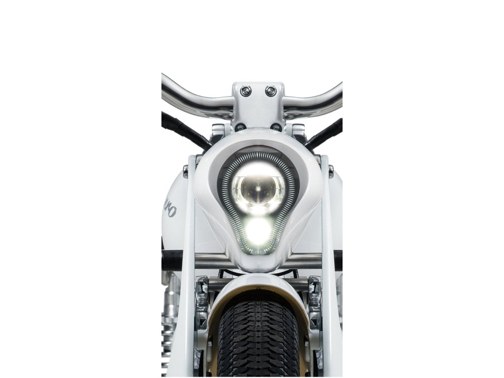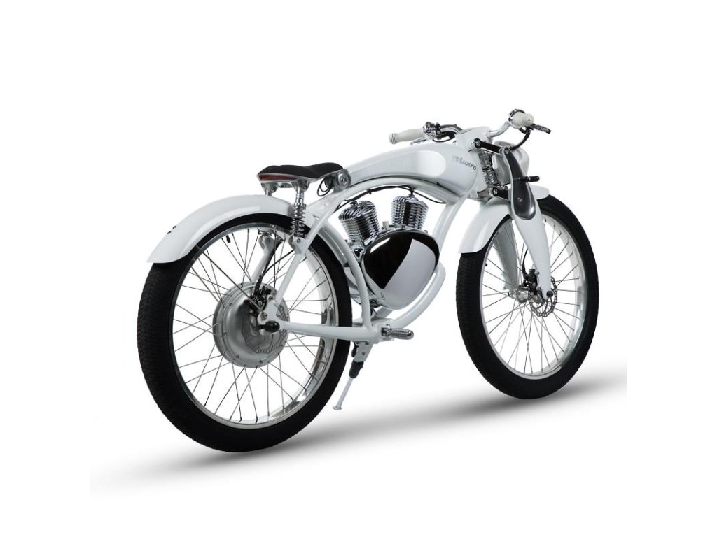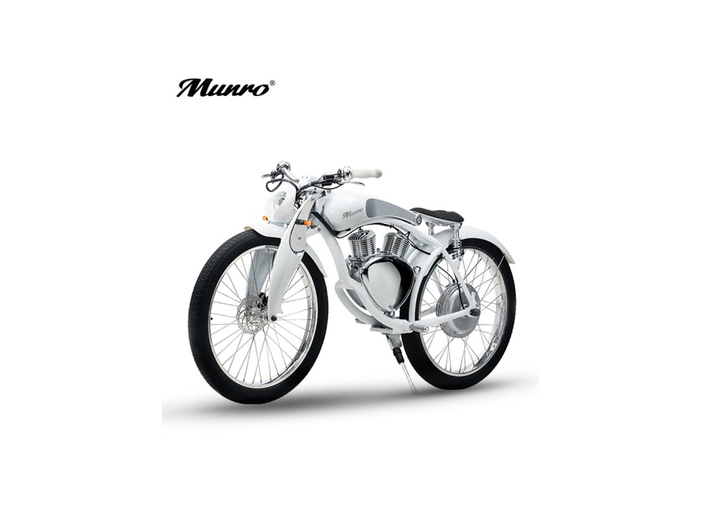 Elektro retro skútr/e-bike MUNRO 2.0 Nové, bílá kola, hnědé sedlo viz foto