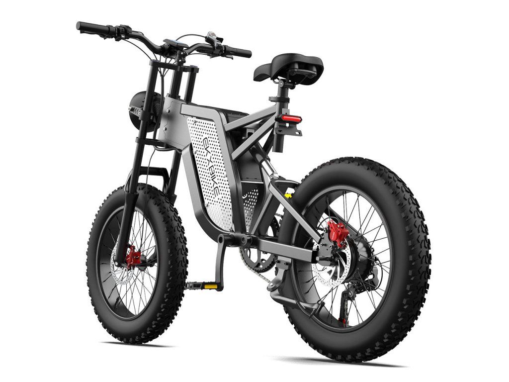 Srdcem EKX X20 je jeho Motor zadního náboje s výkonem 1680 W, schopný tlačit až Vrchol 2000 W během akcelerace nebo stoupání do kopce. Tato konfigurace dává motocyklu dostatek síly při akceleraci z klidu nebo při prudkém zdolávání strmých tras. 50 km/hModel X20 je dostatečně rychlý pro jízdu na otevřených silnicích i v pohoří, přičemž si díky tlustým pneumatikám a stabilní geometrii stále zachovává ovladatelnost. Přenos výkonu je plynulý a kontrolovaný – ne přehnaně agresivní, ale dostatečně silný, aby většina jezdců okamžitě pocítila točivý moment.
