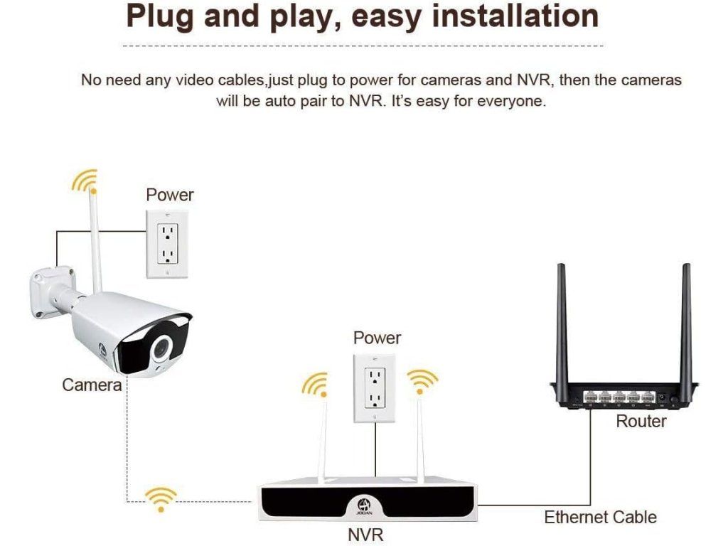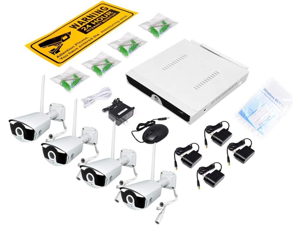Obsah balení: 1× NVR, 4× 1080p bezdrátové kamery, napájecí zdroje a kabely, uživatelský manuál. Technické údaje: Výrobce: JOOAN; Model: LYSB01GY81UIW-ELECTRNCS; Rozlišení videa: 1080p; Počet kanálů: 4; Připojení: Wireless; Noční vidění: barevné; Napájení: Corded Electric; Formát signálu: Digital; Rozměry: 7.5 x 11 x 13.6 inches; ASIN: B01GY81UIW; UPC: 712155187528.