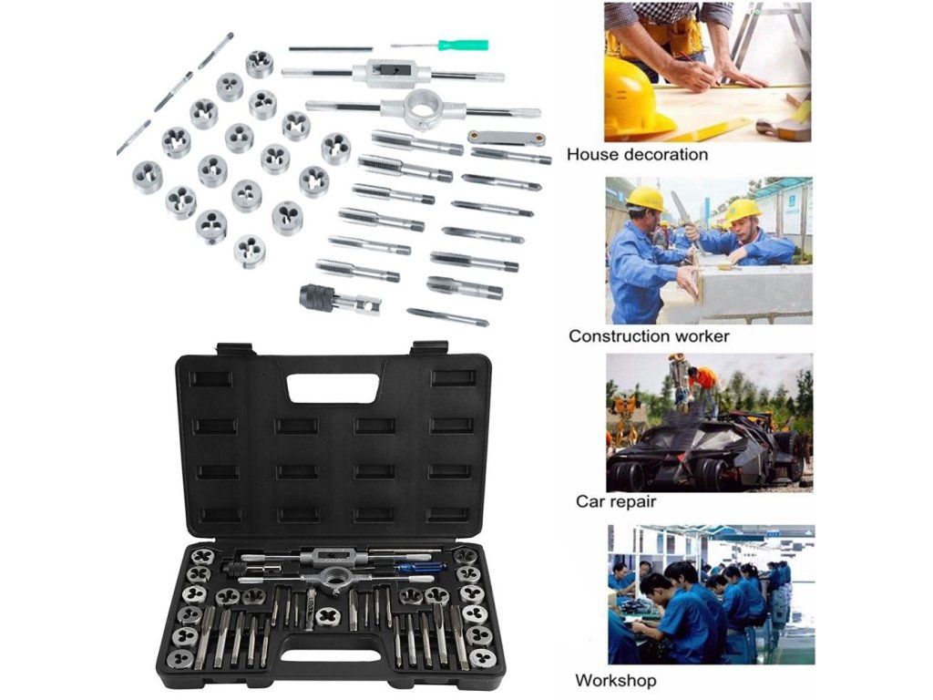 Tato sada obsahuje mnoho závitníků a matric v různých velikostech pro různé závitování a řezání závitů. Nastavitelný klíč může snadno a pevně upnout závitníky, používá se hlavně pro ruční závitování a řezání závitů. Je to skvělá sada nástrojů, která se používá k řezání nebo tvarování vnitřní a vnitřní části matic nebo šroubů.