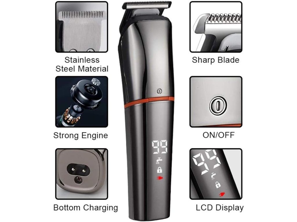 Praktický 6v1 zastřihovač nabízí profesionální výkon v kompaktním provedení – ergonomický tvar, tichý motor a odnímatelné břity umožní pohodlné a přesné úpravy vlasů i vousů doma nebo na cestách.