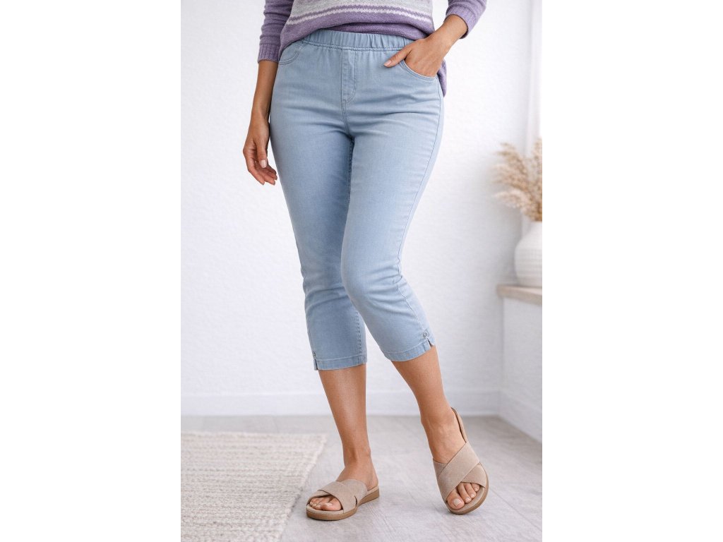 Díky pružnému materiálu a elastickému pasu se kalhoty dokonale přizpůsobí postavě a nikde netlačí. Zkrácená délka pod kolena opticky prodlužuje nohy a působí lehce a svěže. Decentní rozparky s knoflíčkem na spodním lemu dodávají modelu jemný detail, který podtrhuje ženský styl.
