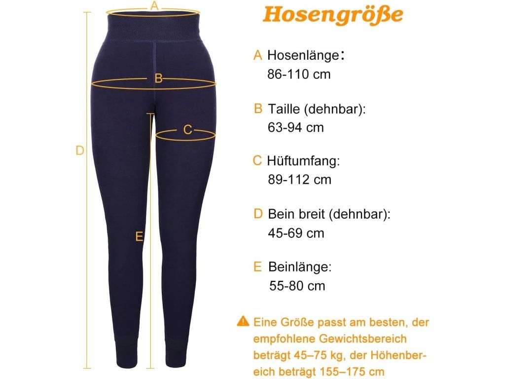 Rozměry: Pas 63-94 cm, boky 89-112 cm, obvod stehna 55-80 cm, délka nohavice 86-110 cm. Obsah balení: 1x černé legíny, 1x tmavě modré legíny.