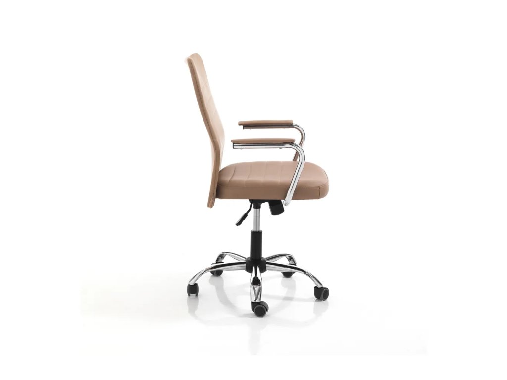 Barva Světle hnědá Vlastnost Pojízdná, nastavitelná výška, s područkami, otočná Šířka 56 cm Výška 102 cm Hloubka 66 cm Váha 11 kg Nosnost 80 kg Výška sedáku 43 cm Minimální výška sedáku 43 cm Maximální výška sedáku 53 cm Hloubka sedáku 47 cm Šířka sedáku 47 cm Výška zadní opěrky 62 cm Výška područky 73 cm Materiál čalounění Imitace kůže Materiál Kov , polstrované Materiál konstrukce Kov Povrchová úprava Chromování Materiál nohou Kov Barva nohou Stříbrná Výplň Molitan (PUR) Typ Čalouněné Péče Pravidleně vysávat s vhodným nástavcem na čalouněný nábytek