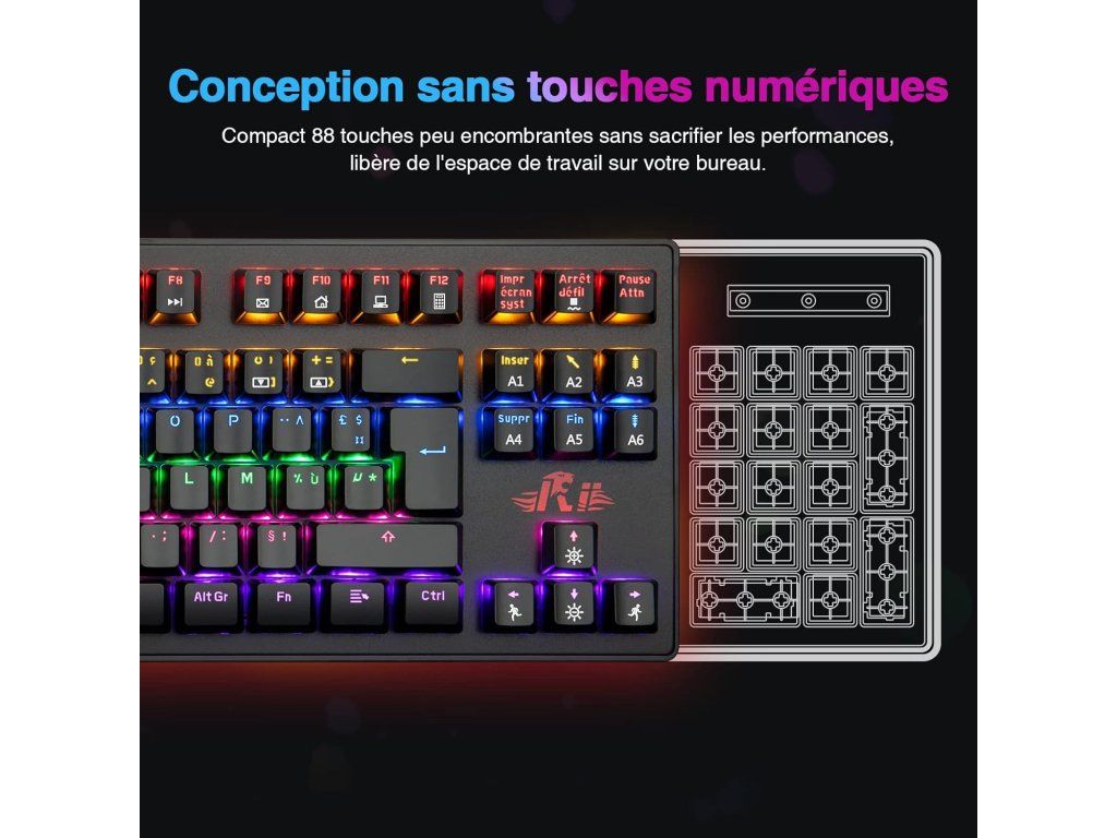 Mechanická herní klávesnice AZERTY, 88 kláves, RGB Nové
