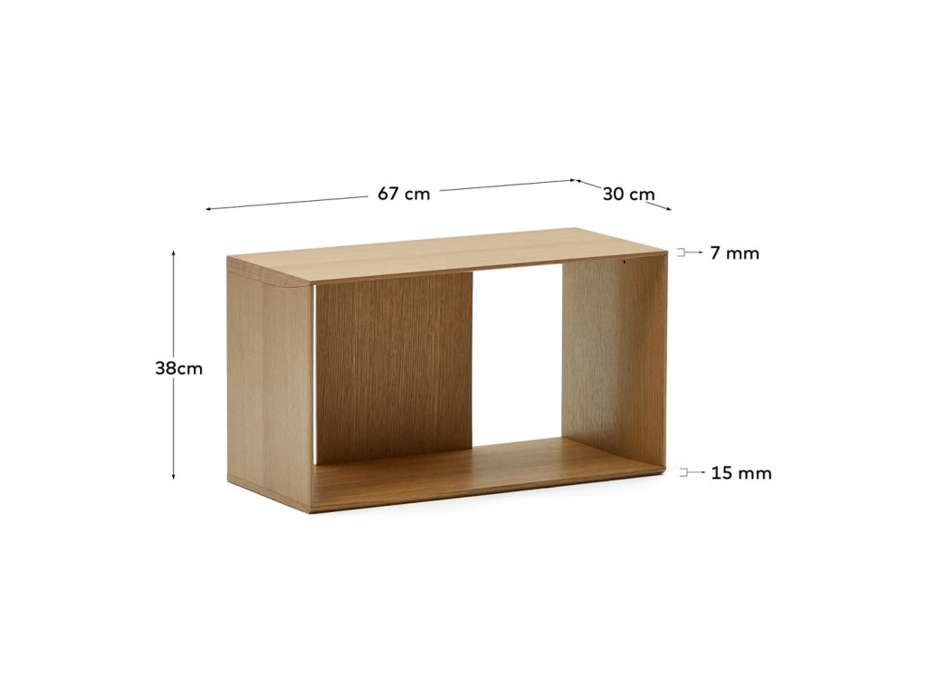 Barva Přírodní Šířka 67 cm Výška 38 cm Hloubka 30 cm Váha 9.05 kg Nosnost 5 kg Materiál MDF Dekor Dub Barva dřeva Světlé dřevo Povrchová úprava Dýha Péče Čistit vlhkým hadříkem nebo houbičkou, nepouživat agresivní a abrazivní čističe