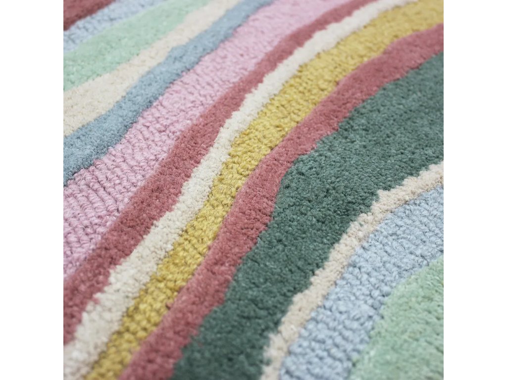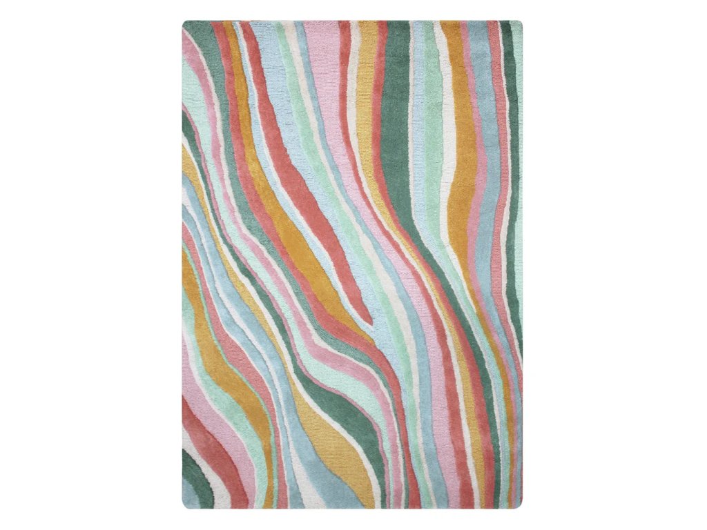 Koberec Abstract Flow vnese do vašeho domova klidný a harmonický nádech. Je tkaný ručně, a to výhradně z přírodních vlněných vláken, přičemž kombinuje smyčkové prošívání s různě dlouhými vlasy pro docílení textury a hloubky. Na praktičnosti mu dále kromě odolnosti dodá jeho snadná kombinovatelnost.