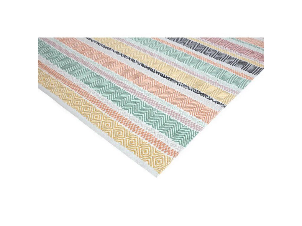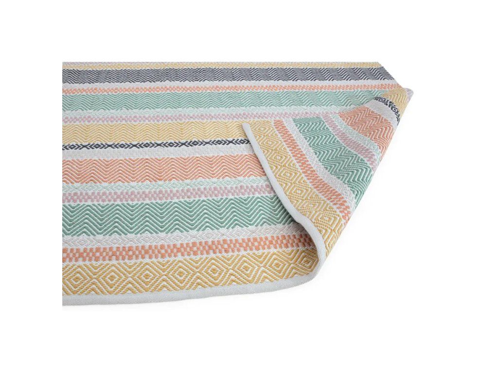 Materiál: 100% recyklované PET vlákno, váha: 11,6 kg, tvar: obdélníkový. Koberec nemá zadní stranu, což umožňuje oboustranné použití.