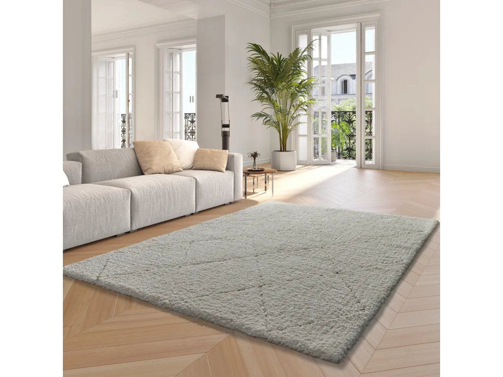 Koberec Atesa je luxusní shaggy koberec v elegantní bílé barvě, který dodá vašemu interiéru moderní a útulný vzhled. S rozměry 160x120 cm je ideální do středně velkých místností jako obývací pokoj nebo ložnice.