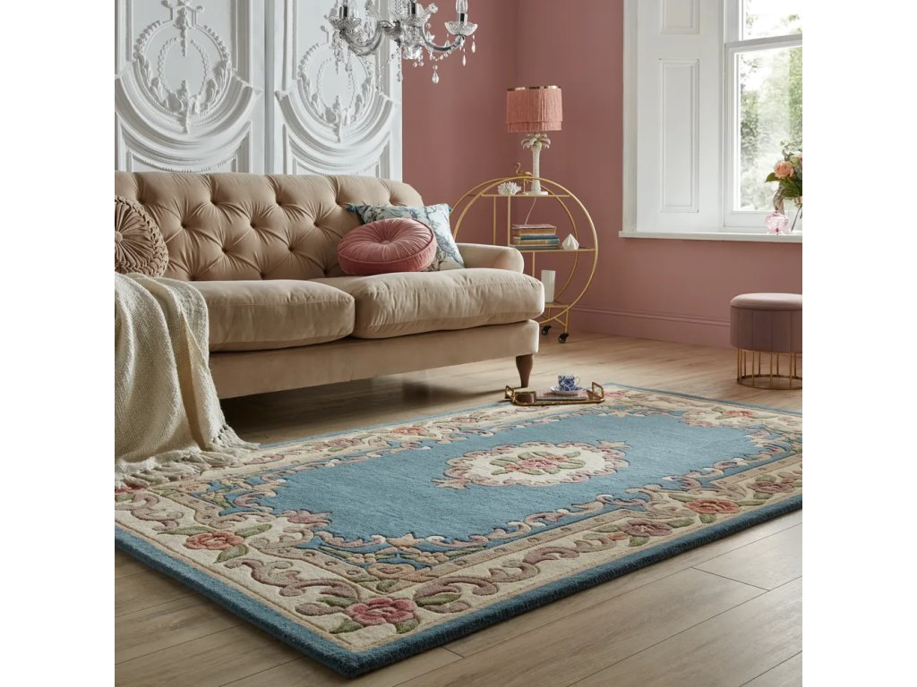 Koberec Aubusson 120 x 180 cm modrý Rozbale(v)no, může být lehce zašpiněné - lze vyčistit