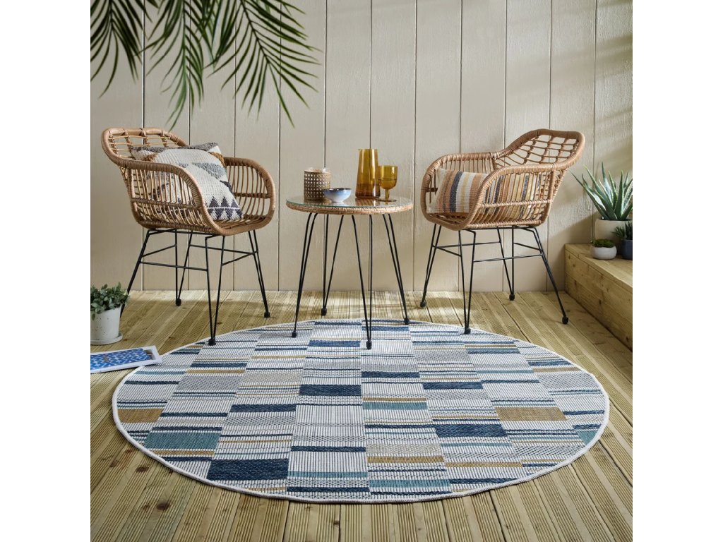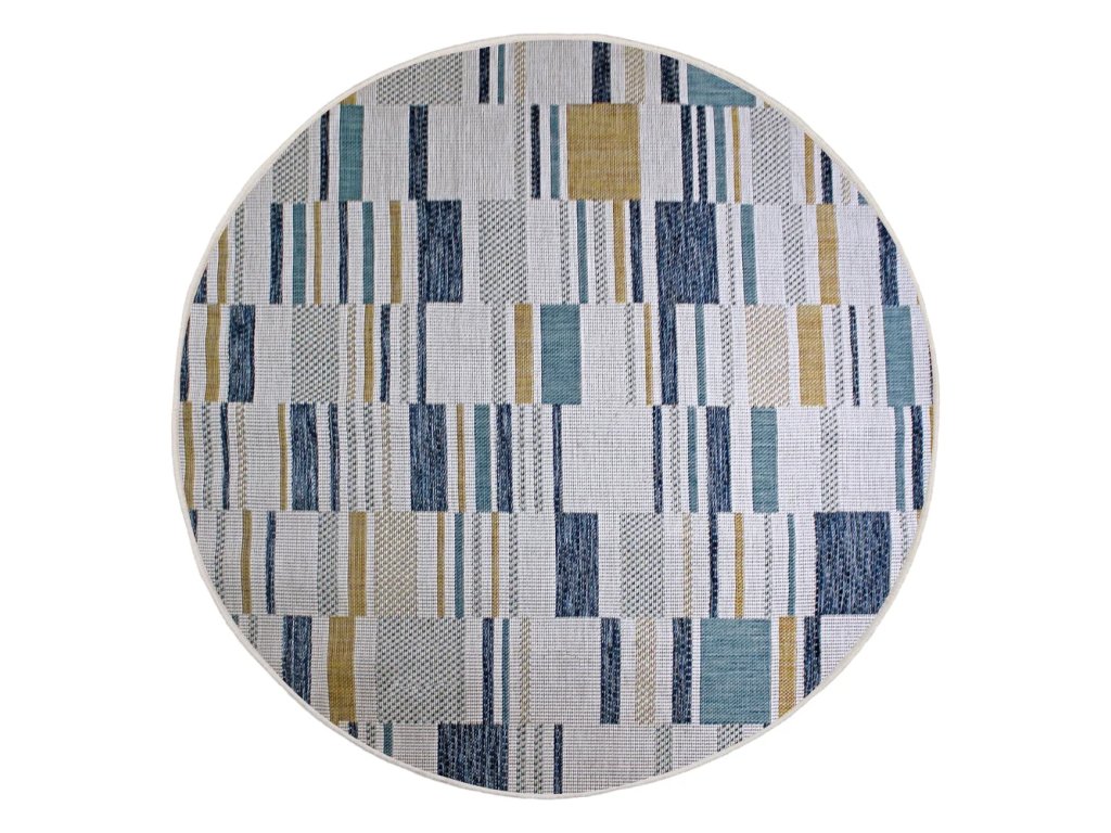 Vnitřní a vnější koberec Rosco Geo žlutý/modrý ø 160 cm Rozbale(v)no, může být lehce zašpiněné - lze vyčistit