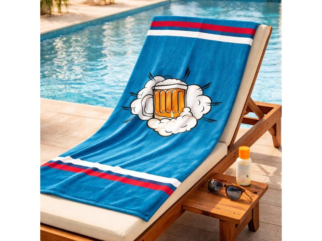 Plážová osuška s motivem piva 70x140 cm modrá Nové