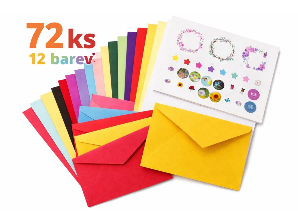 Sada barevných obálek se samolepkami 72ks Nové