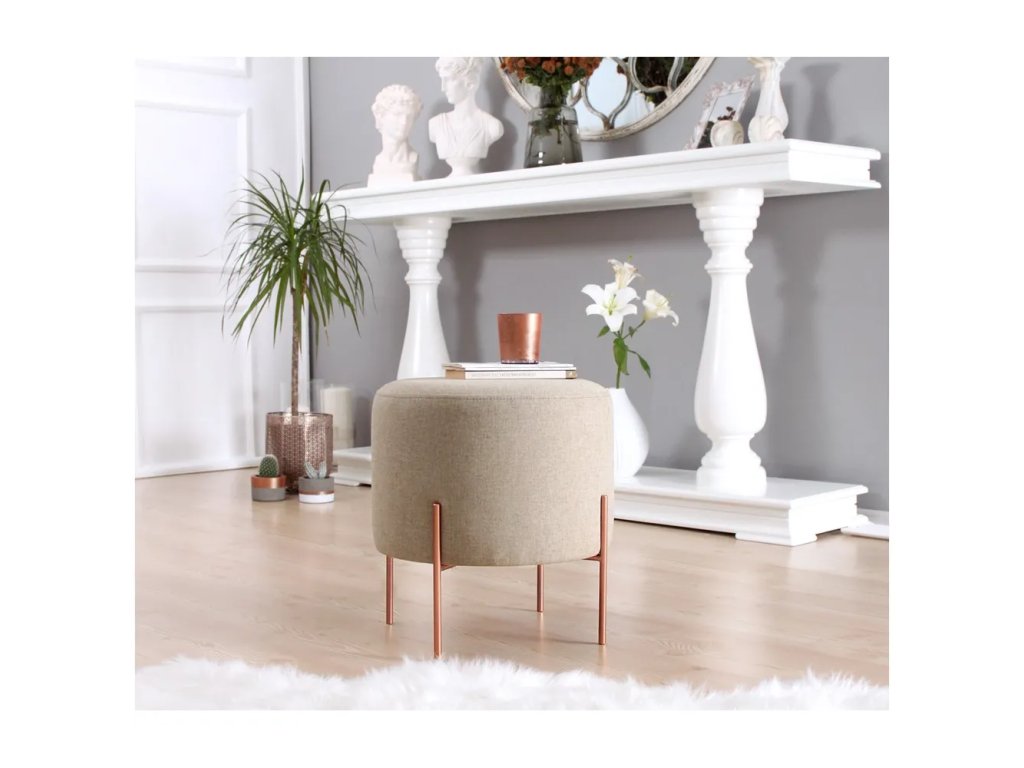 Barva Béžová Šířka 40 cm Výška 42 cm Hloubka 40 cm Váha 6.4 kg Výška nohou 15 cm Tvar Čtvercový Specifikace materiálu 50% bavlna, 50% len Barva nohou Měděná Výplň Molitan (PUR) Tvrdost sedáku Středně tvrdý Péče Čistit vlhkým hadříkem nebo houbičkou, nepouživat agresivní a abrazivní čističe