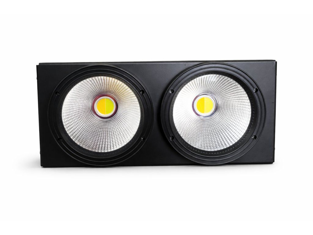 Profesionální scénický LED blinder reflektor LEVNO je ideální volbou pro divadelní, koncertní a eventové osvětlení. Osazený dvěma výkonnými 100W COB LED diodami poskytuje kombinaci teplé bílé (2900K) a studené bílé (6000K) pro vytvoření dokonalé denní bílé.