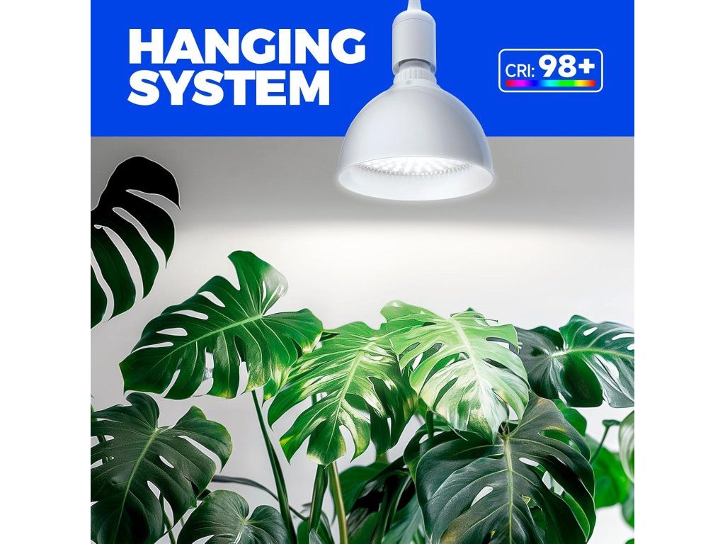 - Plné spektrum: 380–780 nm, 5000 K denní bílé světlo s CRI 98+, ideální pro široké spektrum pokojových rostlin.
