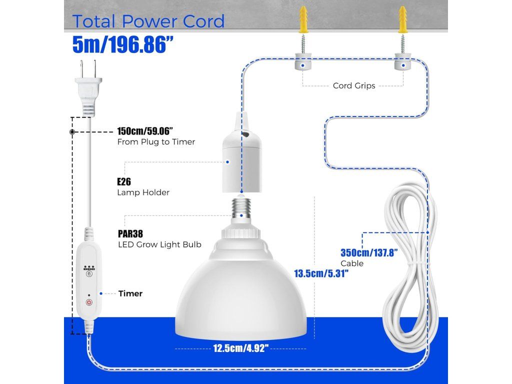 - Praktické závěsné provedení: snadné upevnění, nastavitelná výška a dlouhý 16,4 ft (cca 5 m) přívodní kabel s časovačem.