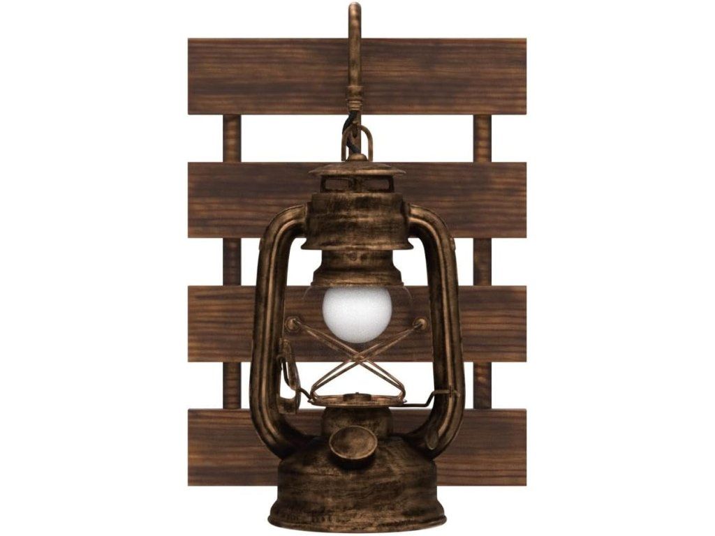 Rustikální nástěnná lampa ve stylu petrolejky dodá interiéru teplou atmosféru a industriální kouzlo. Kombinace kovu, dřeva a čirého skla vytváří dekorativní prvek vhodný pro domácnosti i komerční prostory.