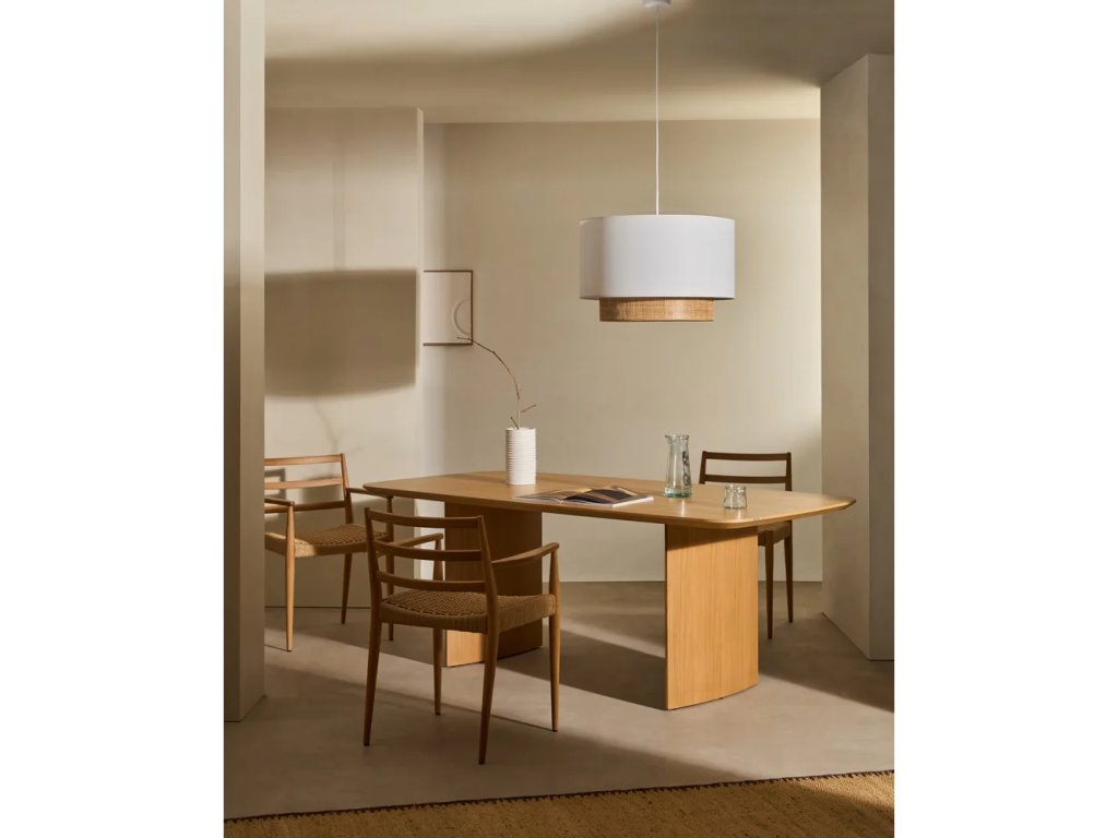 Elegantní stínidlo Erna od značky Kave Home se skládá z vnitřní bambusové a vnější textilní vrstvy v bílé barvě. Pro montáž je nutné dokoupit závěsný kabel, skvěle bude ladit s kabely z kolekce Fulvia a Kaede.