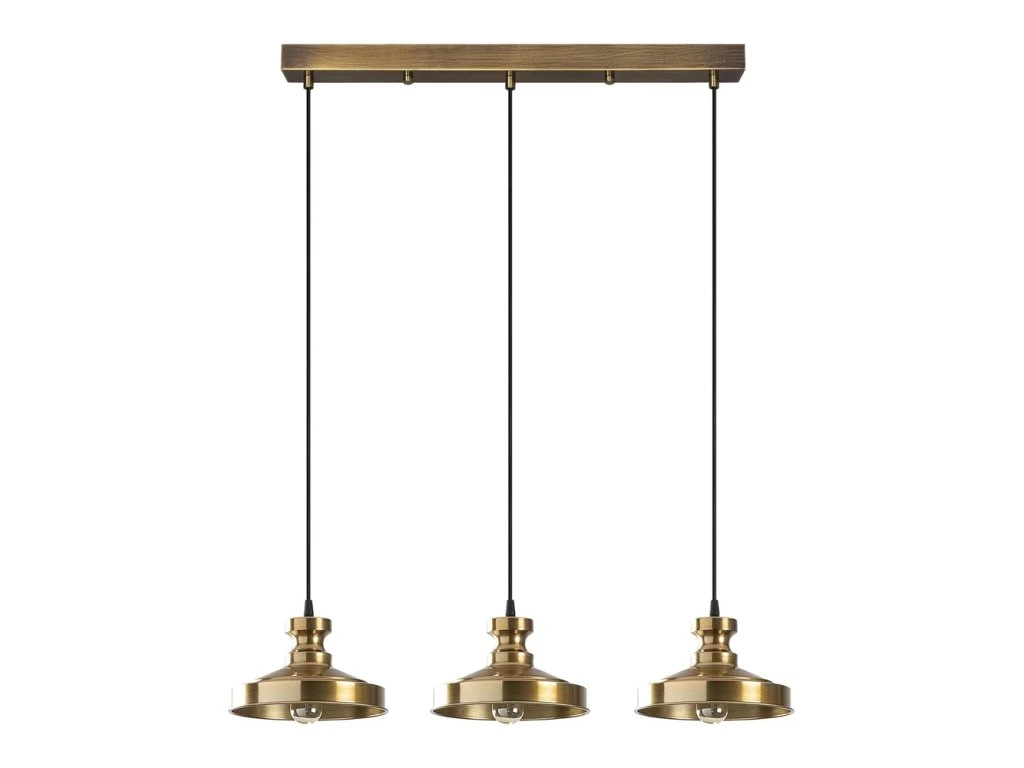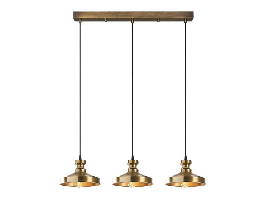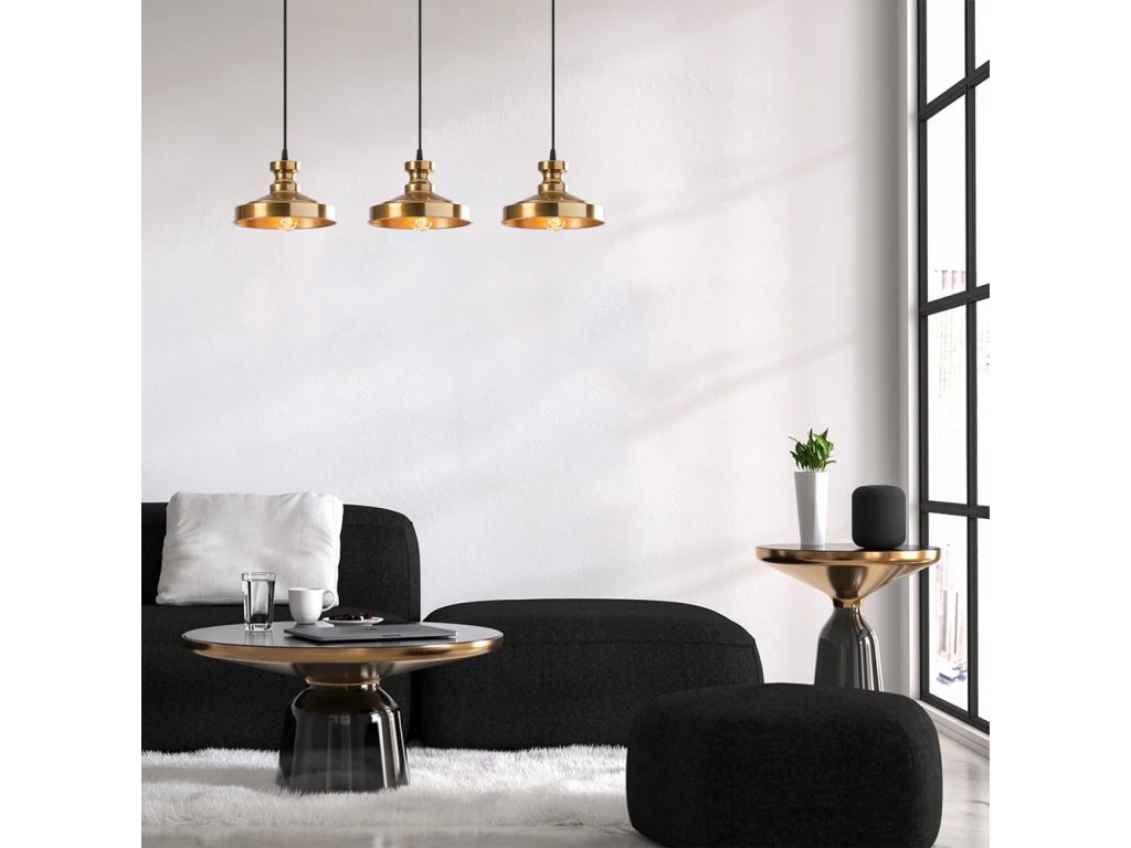 Barva Zlatá Patice E27 Počet žárovek 3 ks Příkon 40 W Napájení Trvale nainstalováno Žárovka je součástí balení Ne Délka 72 cm Šířka 22 cm Výška 109 cm Průměr stínítka 22 cm Váha 2.3 kg Materiál Kov Materiál stínítka Kov Péče Otírejte suchým hadříkem