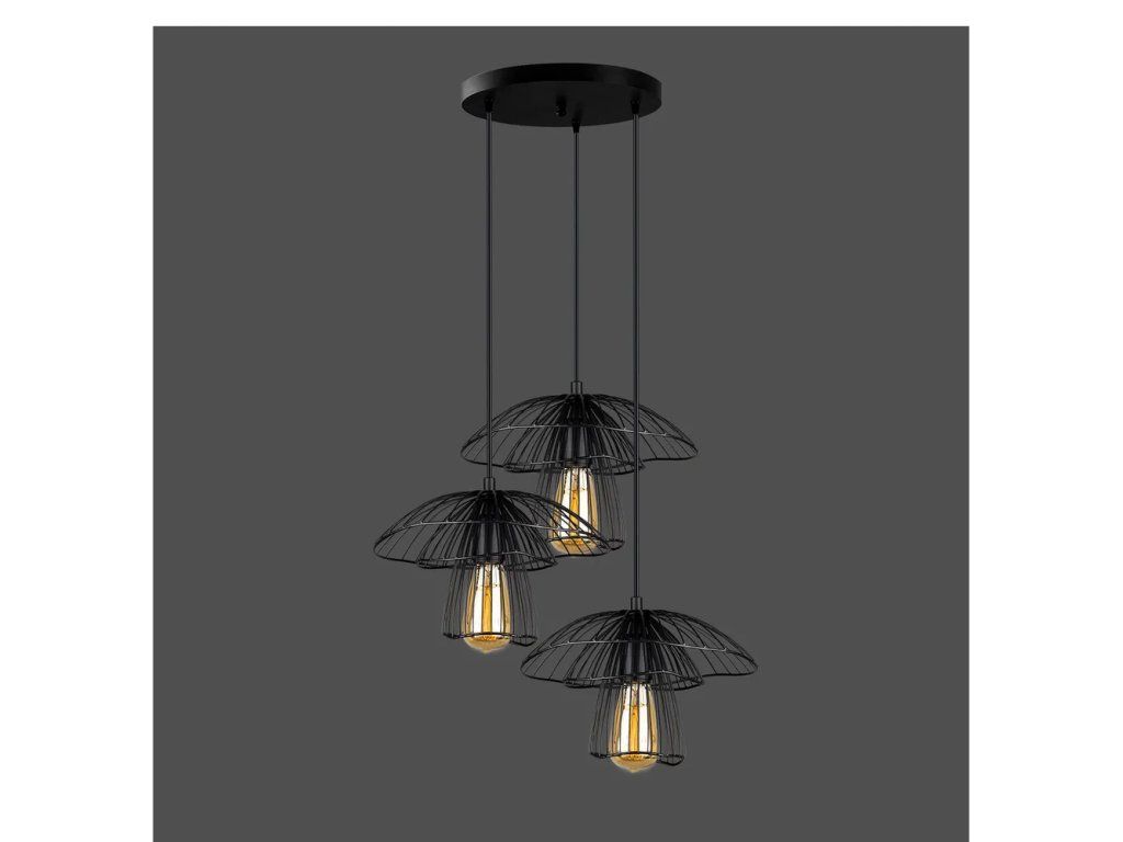Barva Černá Patice E27 Počet žárovek 3 ks Příkon 100 W Napájení Trvale nainstalováno Žárovka součástí balení Ne Průměr 64 cm Výška 117 cm Průměr stínidla 33 cm Délka kabelu 100 cm Váha 3.424 kg Materiál Kov Materiál konstrukce Kov Materiál stínidla Kov Péče Otírejte suchým hadříkem
