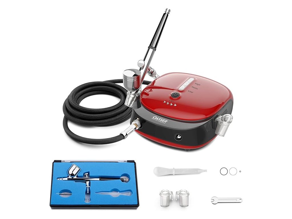 - Ideální pro začátečníky: Součástí je podrobný návod, který usnadní první kroky v airbrush technice pro modely, umělecké práce, domácí kutění i cukrářské dekorace (po použití netoxických barev).