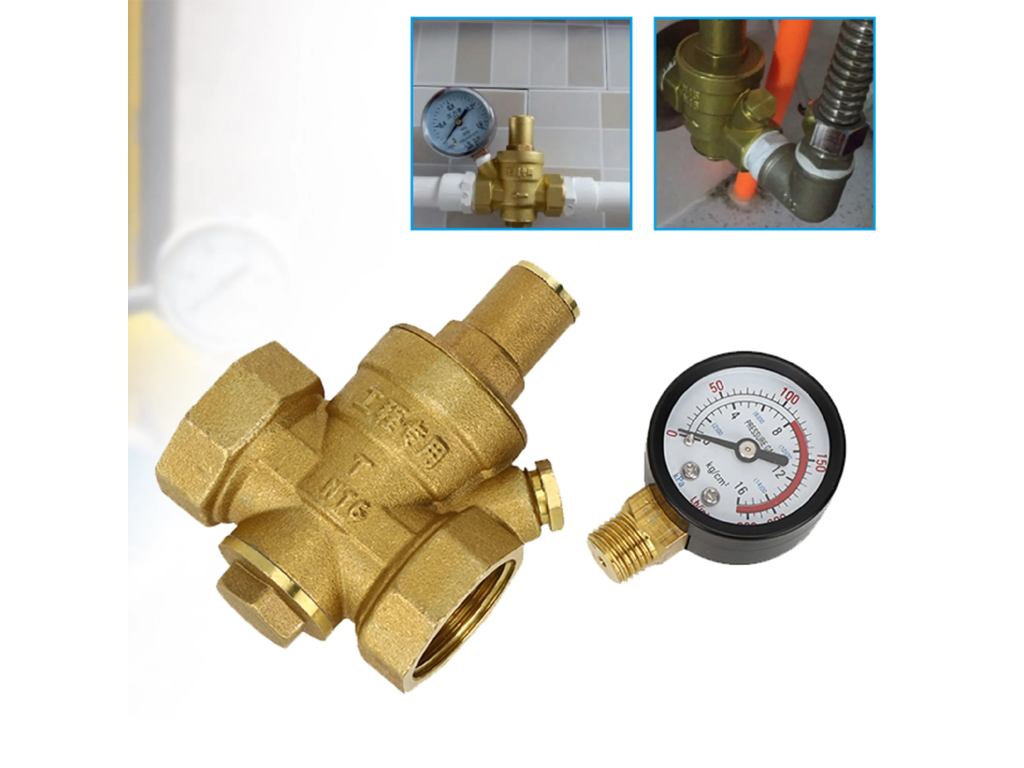 DN25 Mosazný nastavitelný reduktor tlaku vody + manometr Nové