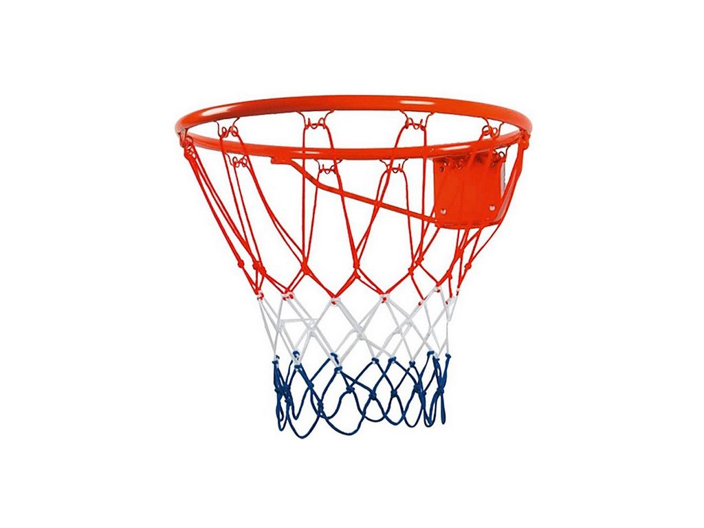 Basketbalový koš v oranžové barvě včetně červeno/bílo/modré síťky.