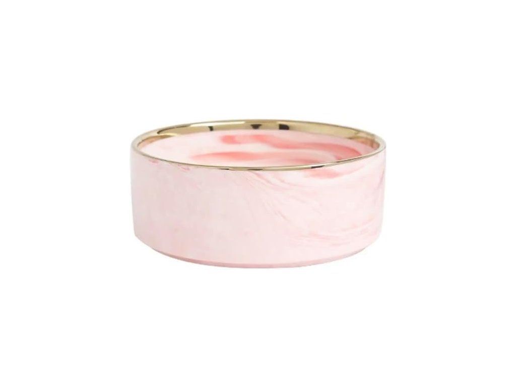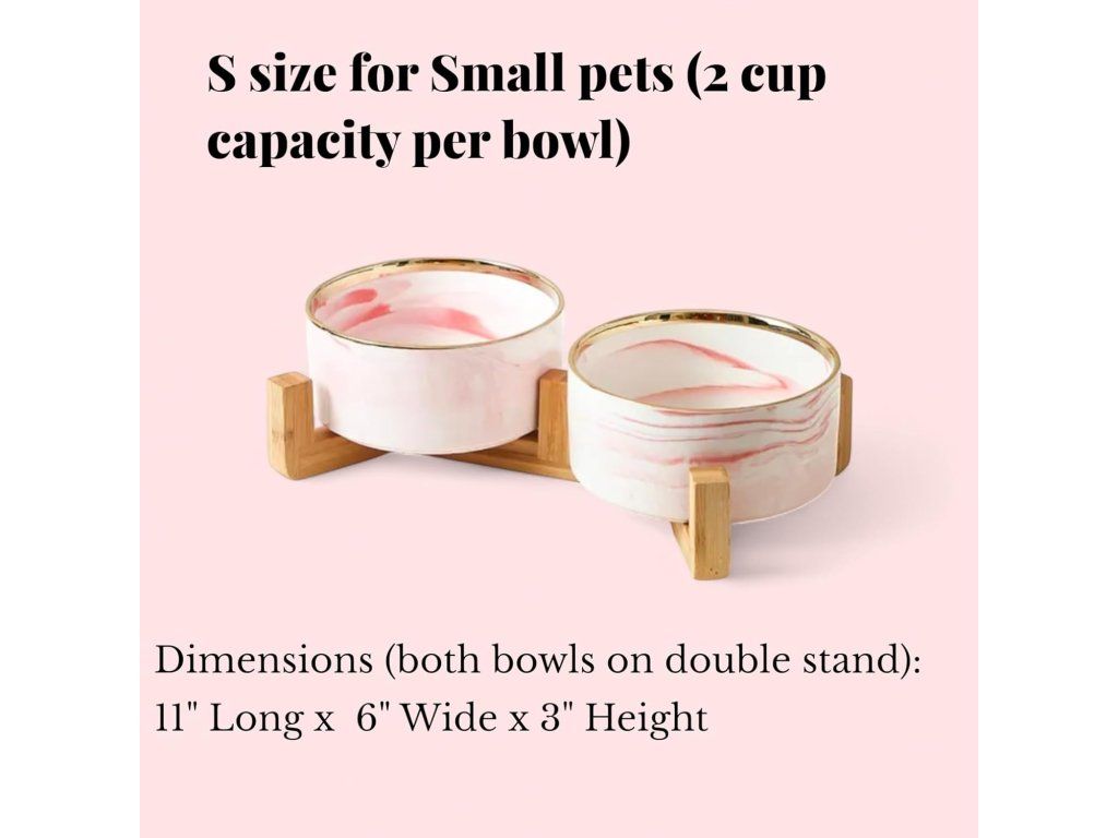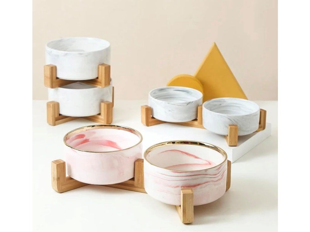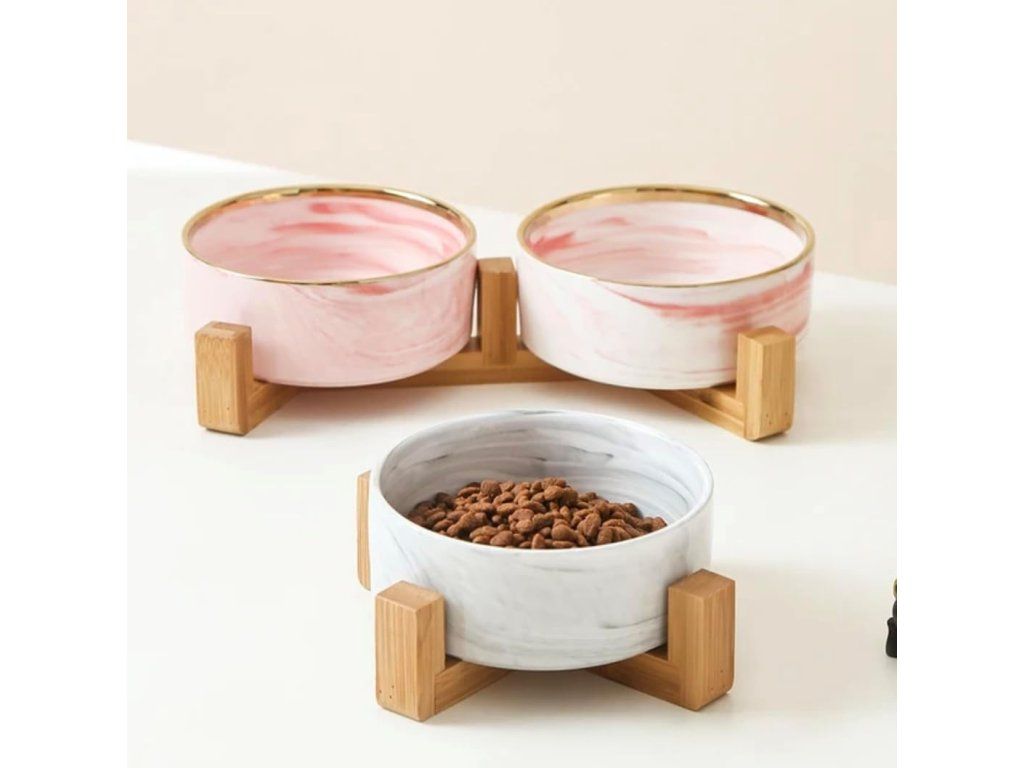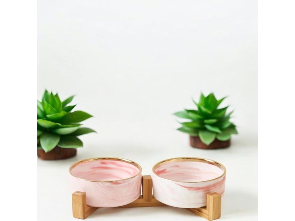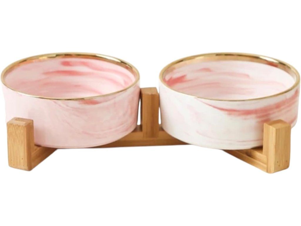 Keramické misky na krmivo s podstavcem, mramor růžovo‑zlatý, malá Nové