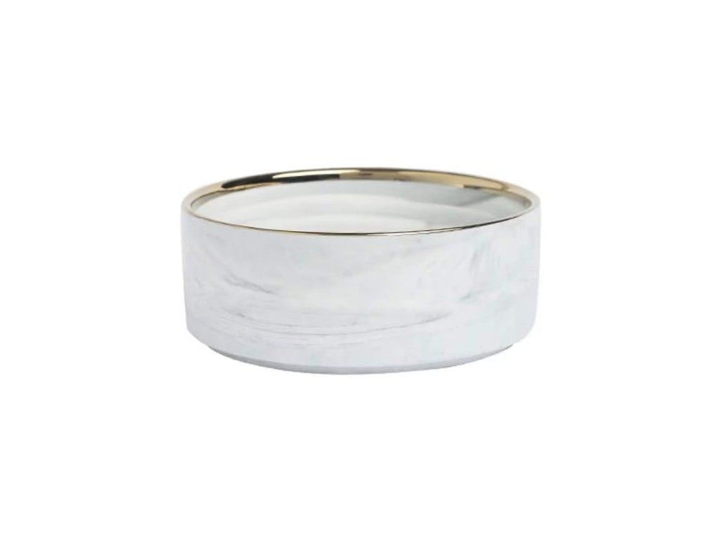 Dodejte krmení svého mazlíčka styl a praktičnost. Tato sada dvou keramických misek s mramorovým vzorem a zlatými detaily je umístěná v pevnem stojanu, který zajišťuje pohodlný přístup, snižuje nepořádek a zároveň působí nenásilně elegantně v každém interiéru.