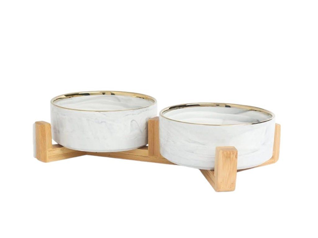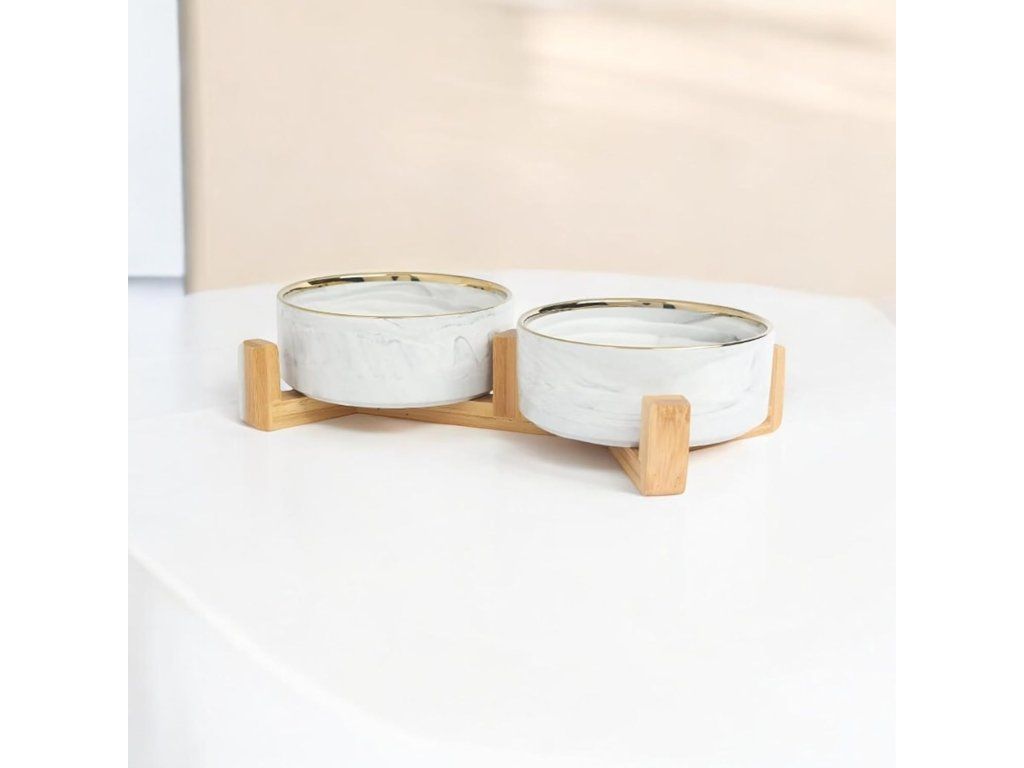 Keramické misky pro mazlíčky s mramorovým vzorem a stojanem (sada 2) Nové
