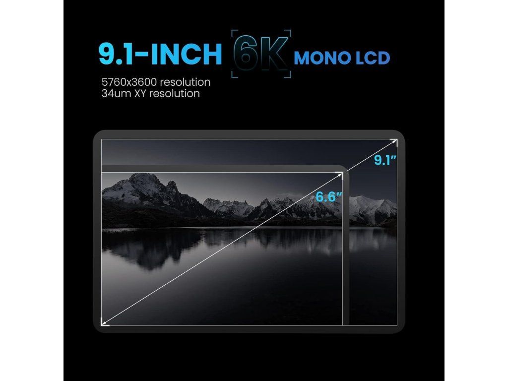 - 9,1" 6K mono LCD – panel s rozlišením 5760 × 3600 a XY rozlišením 34 µm pro velmi jemné detaily a hladké povrchy.