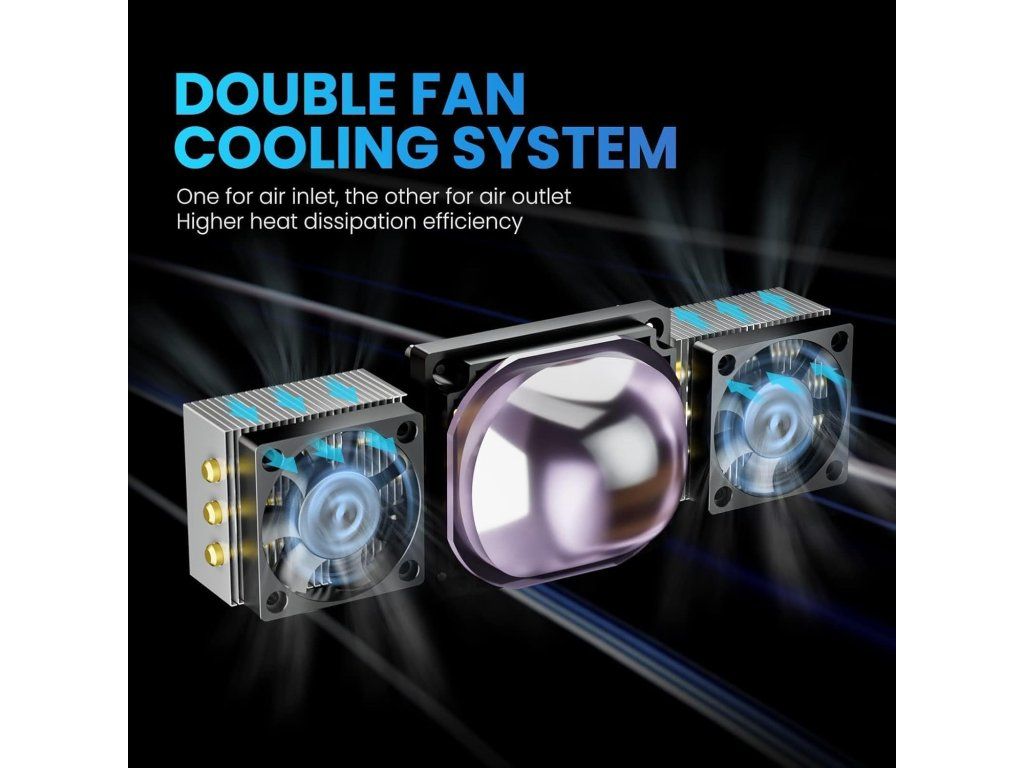 - Dvojité ventilátory pro účinné chlazení – oddělené nasávání a výfuk zlepšují cirkulaci vzduchu a prodlužují životnost tiskárny.