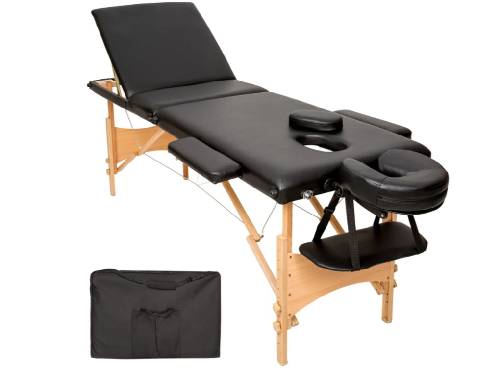 Skládací masážní lehátko dřevěné 3 zóny černá Rozbaleno
