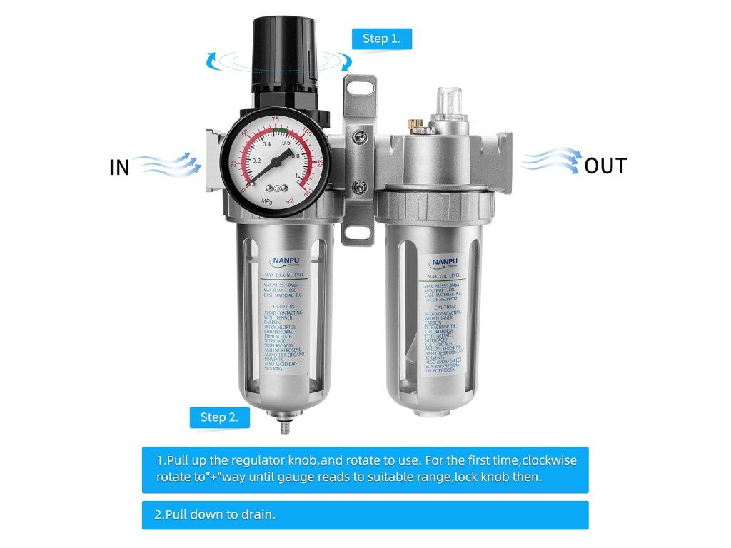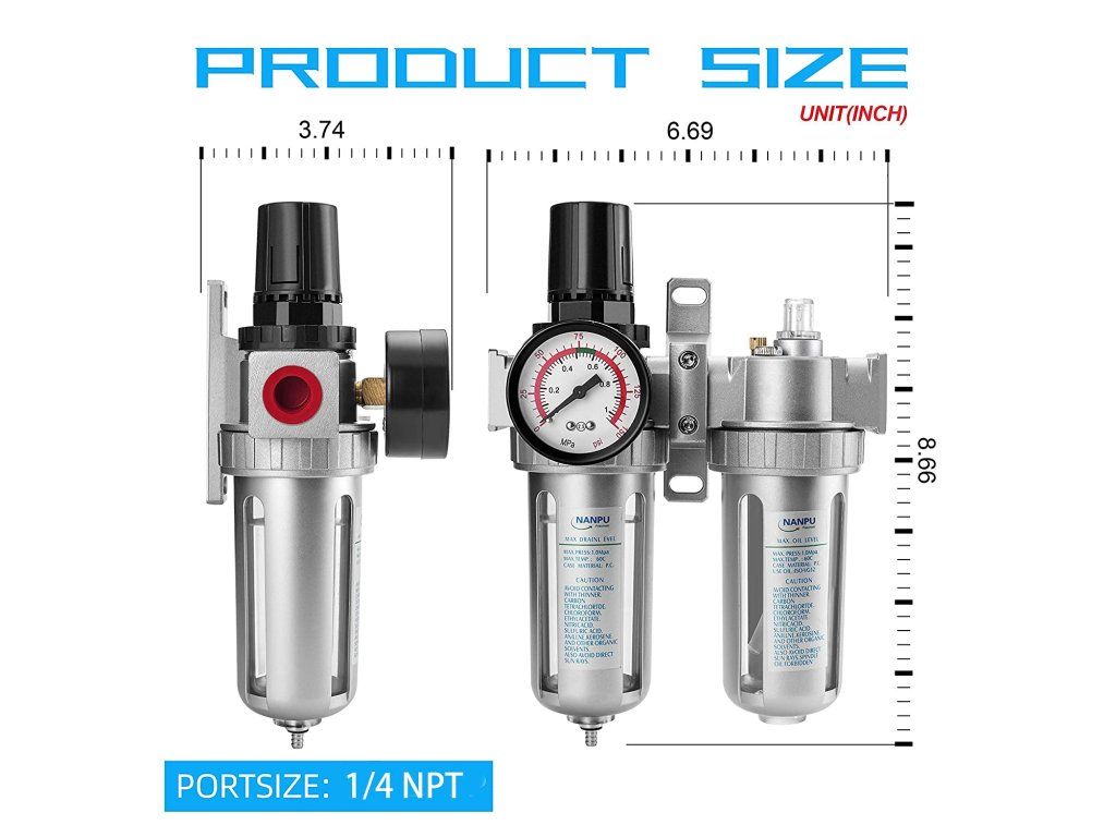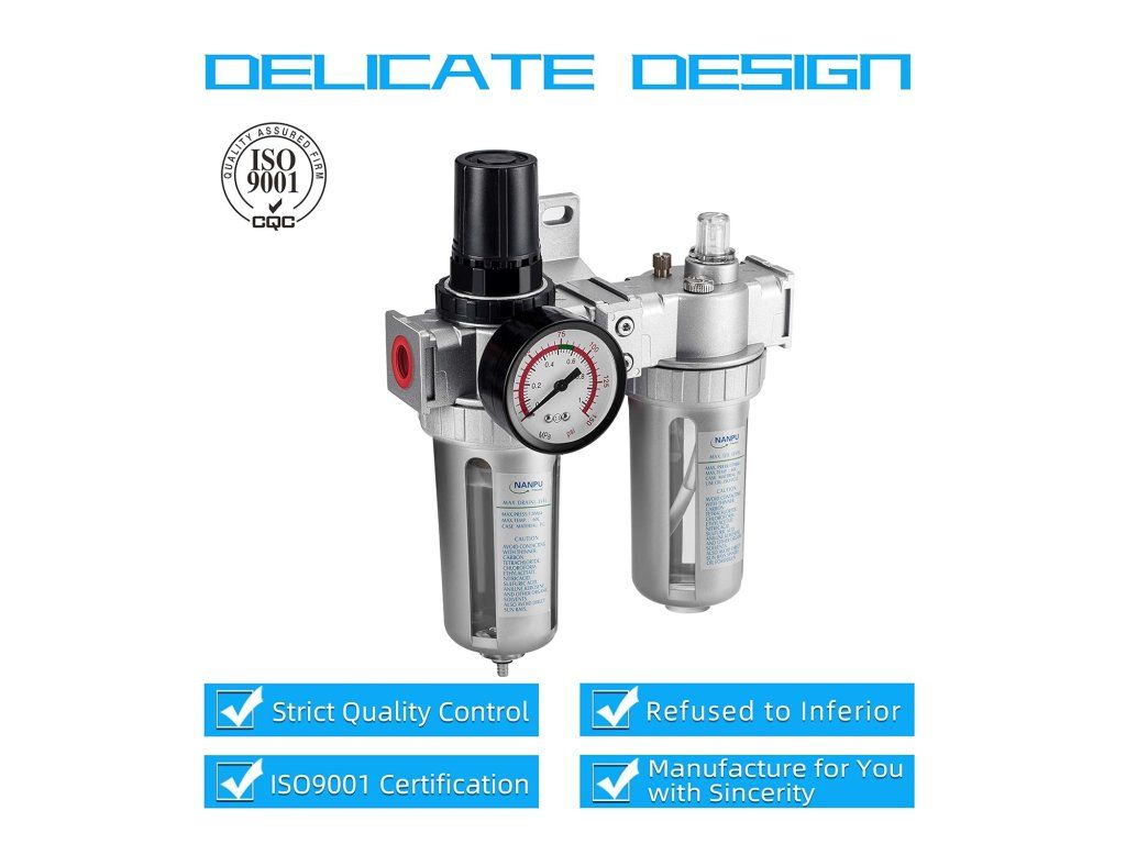 Kompaktní 3v1 jednotka NANPU pro úpravu stlačeného vzduchu je ideálním řešením pro dílny, pneumatické nářadí a průmyslové aplikace. Tato všestranná jednotka kombinuje filtr, regulátor tlaku a mazač v jednom kompaktním zařízení, které zajišťuje čistý, suchý a promazaný vzduch s přesnou regulací tlaku.